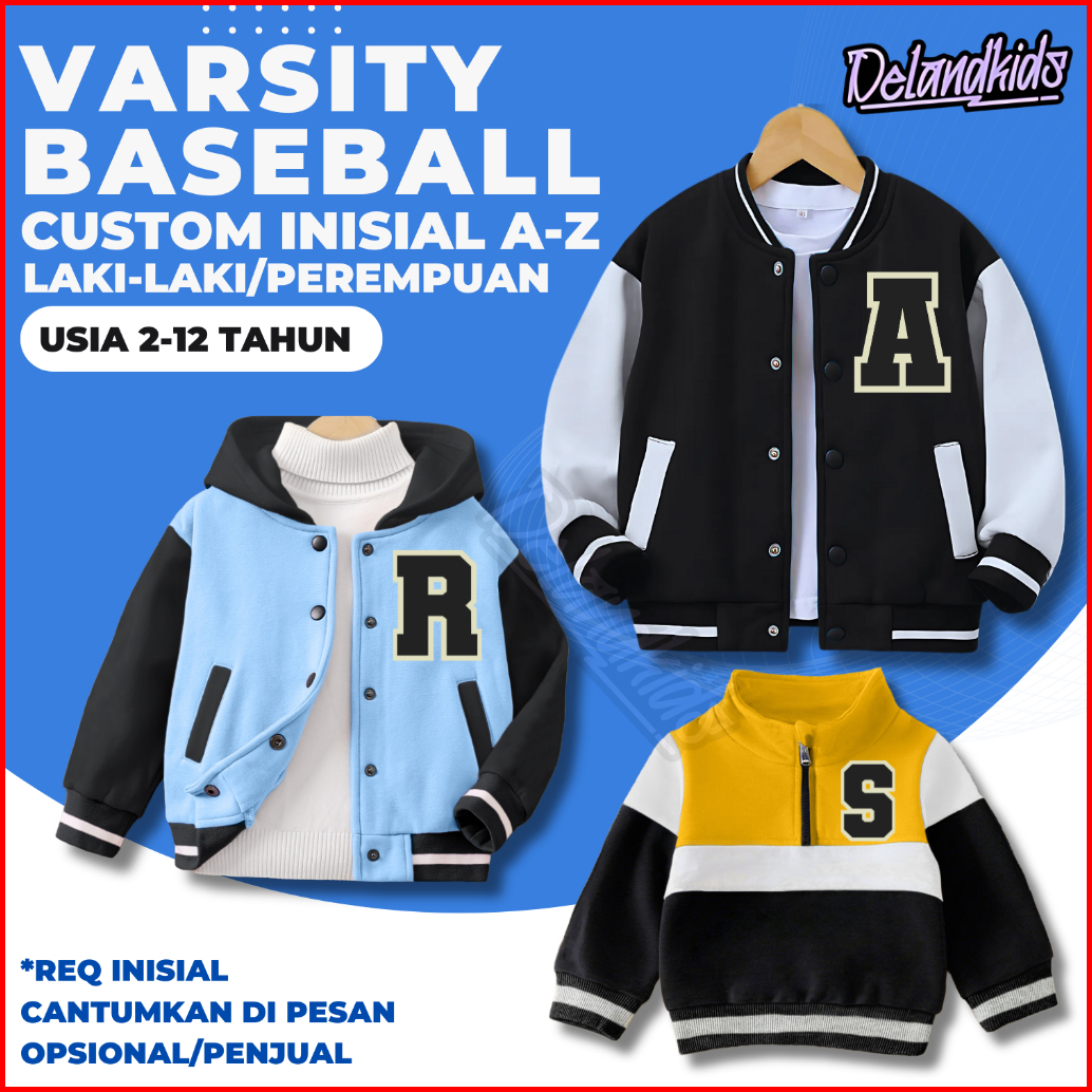 Jaket Anak Custom Desain Inisial A-z Laki-laki Perempuan Usia 2-12 Tahun Bahan Premium Fleece