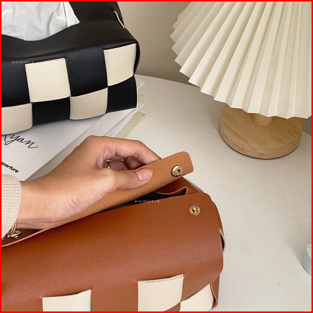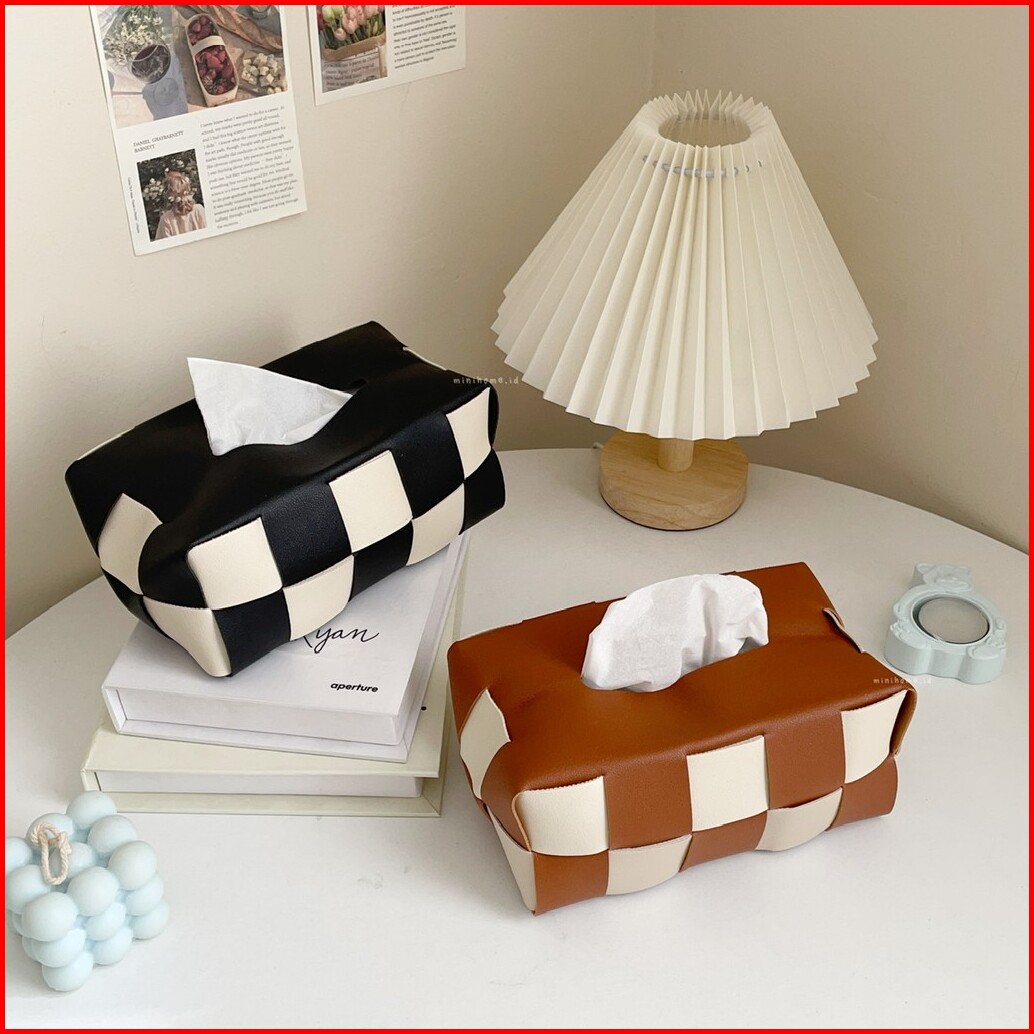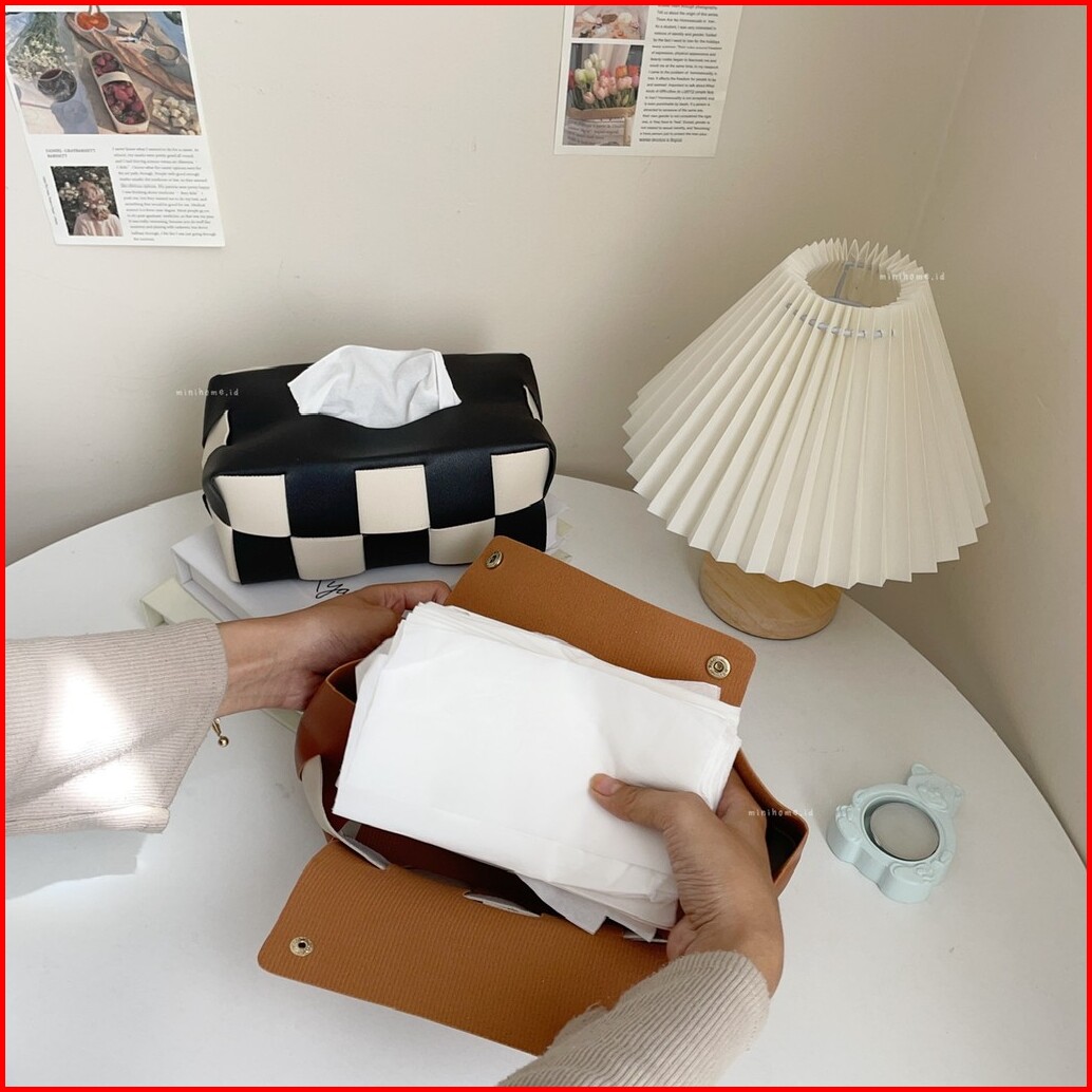 Minihome Myo Tempat Tisu Kulit Sintetis Tissue Organizer Kotak Tisue Bahan Pu Motif Kotak-kotak