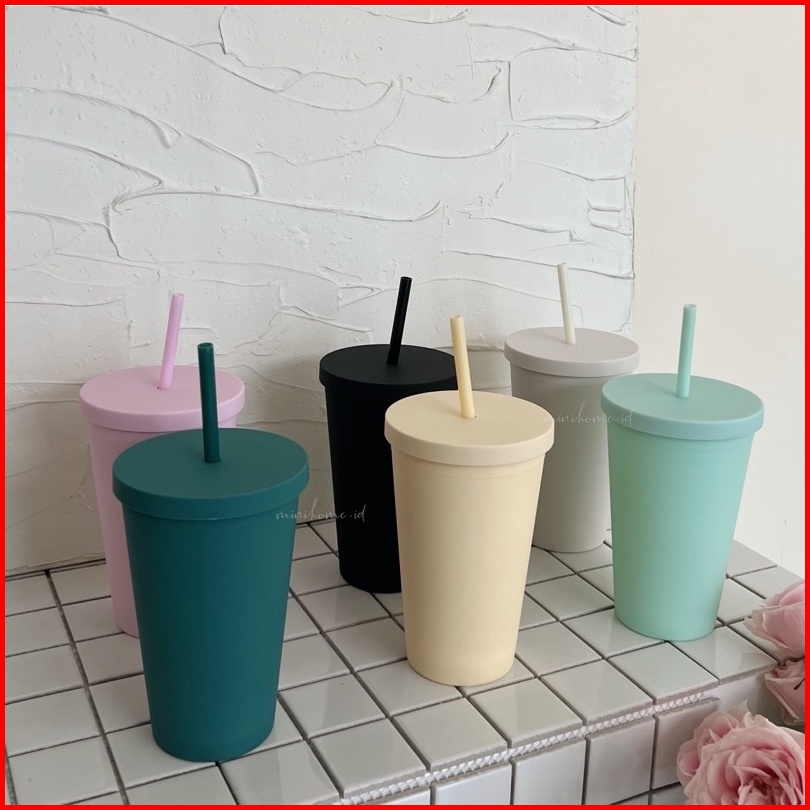 Minihome Nore Tumbler 500ml Tumbler Minuman Include Sedotan Botol Minum Warna Pastel Aesthetic
