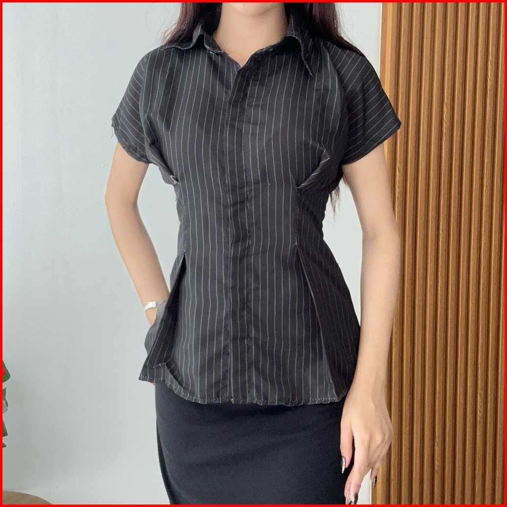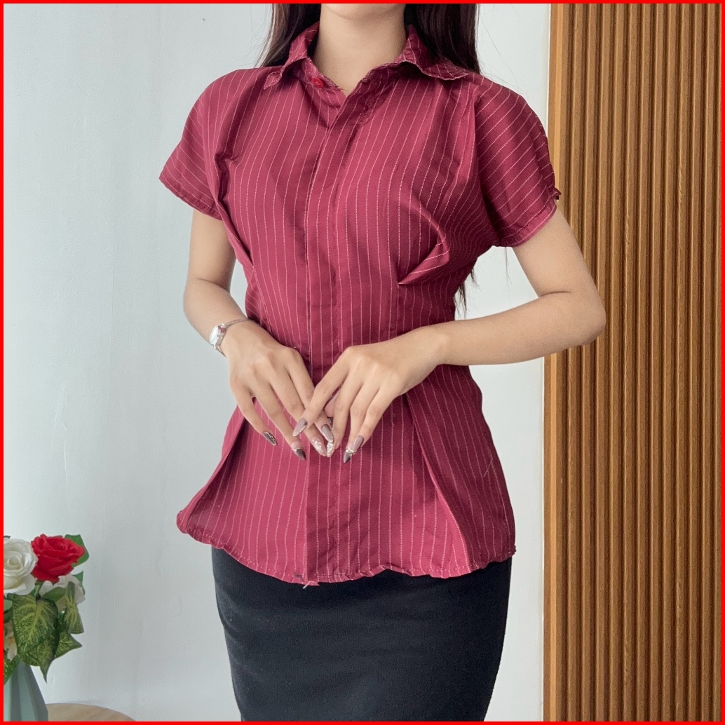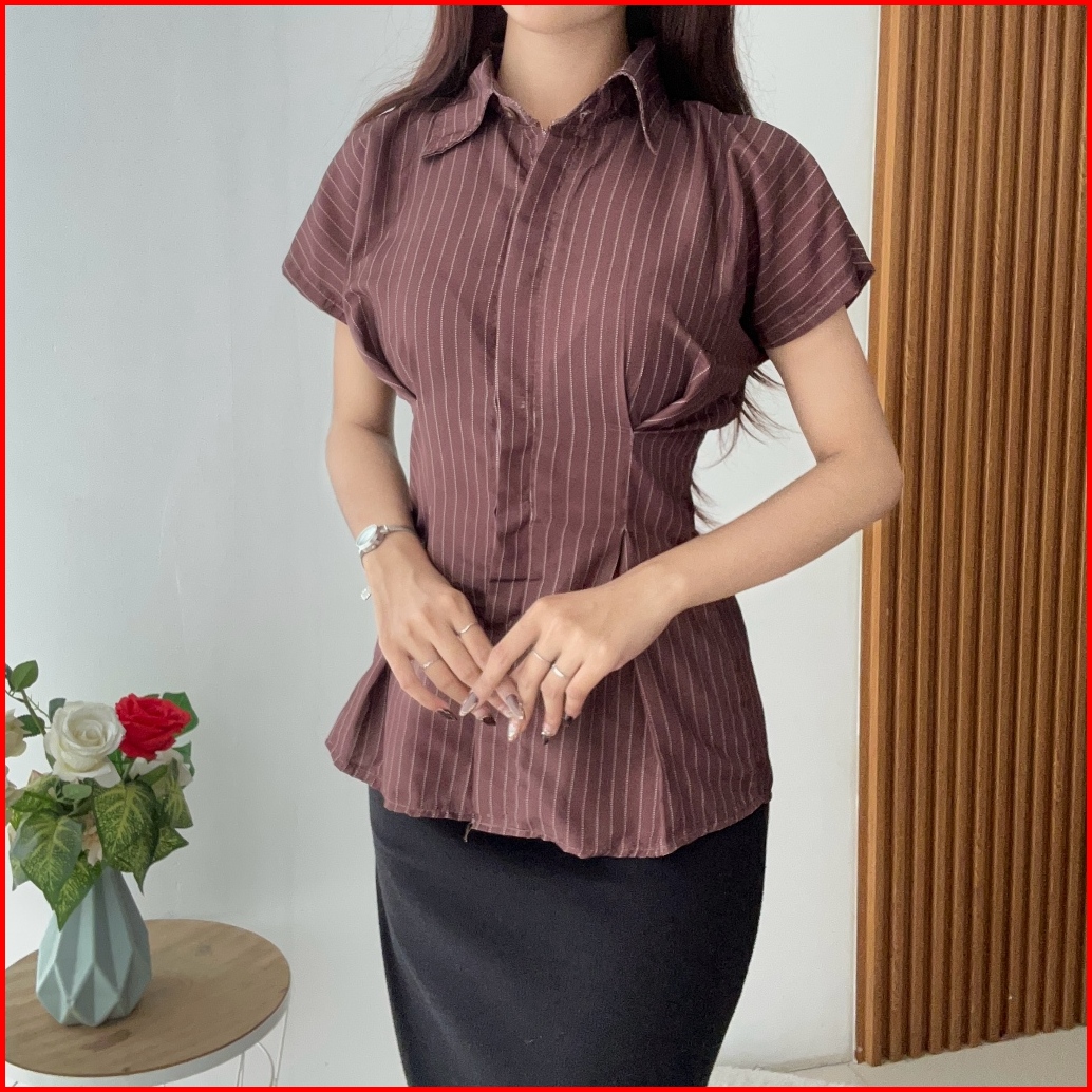 Rx Fashion - Alba Top Shirt Kemeja Garis - Garis Kemeja Salur Wanita Lengan Pendek -pn