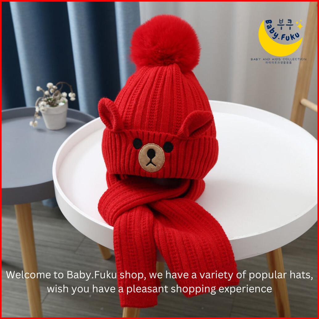 Baby.fuku Topi Kupluk Anak Karakter Bear Beruang Lucu Bahan Wol Rajut Premium Banyak Motifcewekcowok