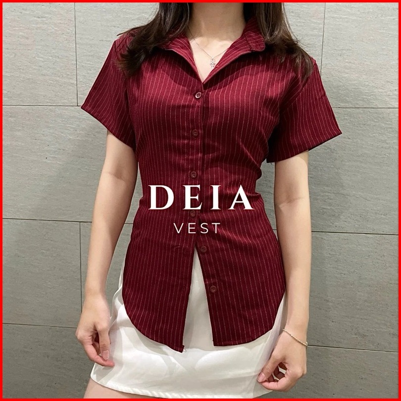 Rx Fashion - Deia Shirt Korean Top Atasan Formal Vest Wanita Atasan Kemeja Lengan Pendek Fit Body -pn