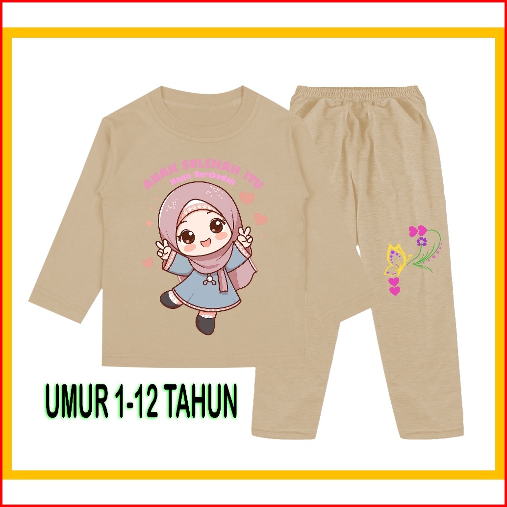 Baju Setelan Piyama Anak Soleh Perempuan Lengan Panjang Celana Panjang 1 - 10tahun