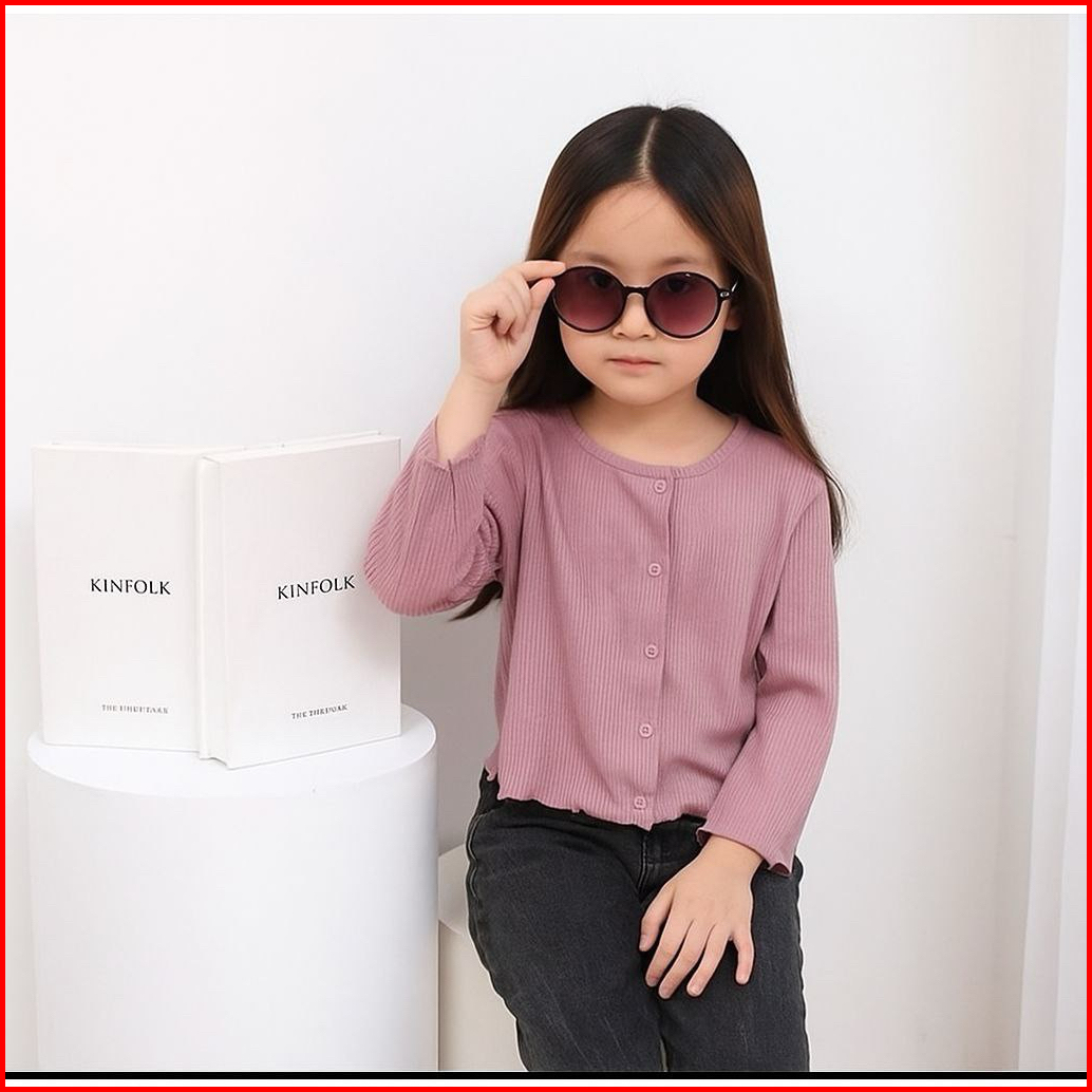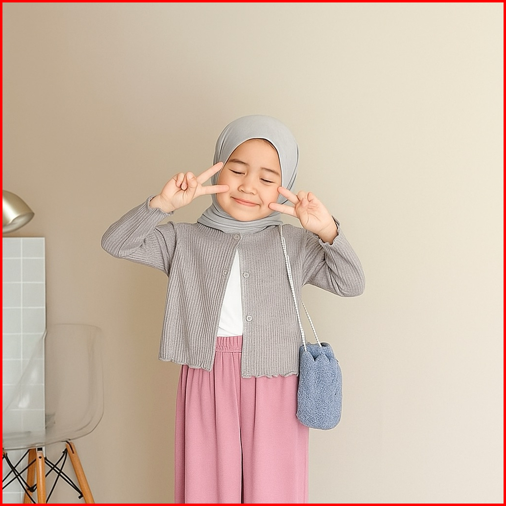 Cardigan Anak Perempuan Usia 2 Sampai 12 Tahun Bahan Rajut Waffle Knit