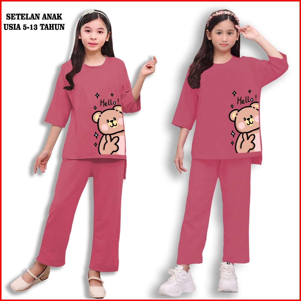 Setelan Anak Perempuan Bear Peace Side Usia 5-13 Tahun Setelan Anak Hoshi