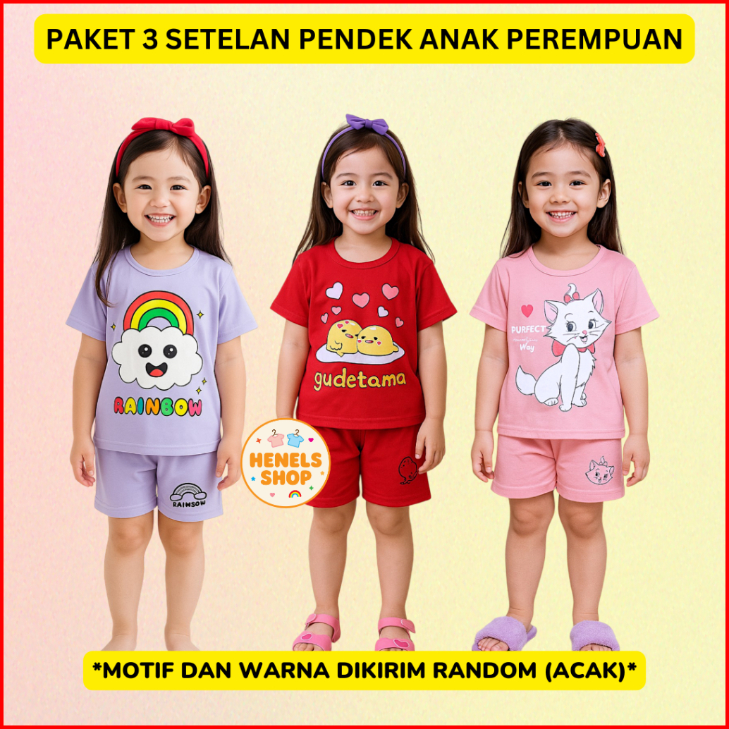Setelan Panjang 3 Pcs Anak Perempuan Usia 3 - 7 Tahun Baju Tidur Anak Perempuan
