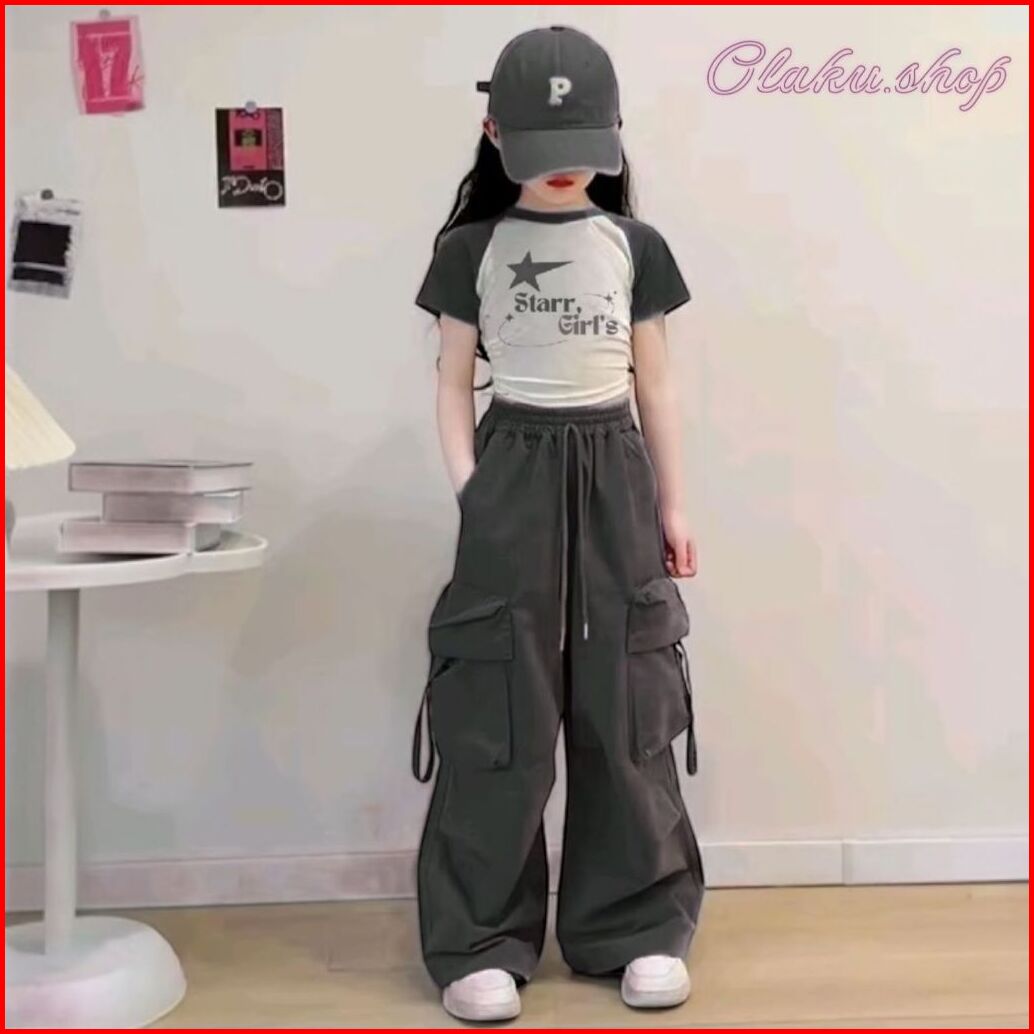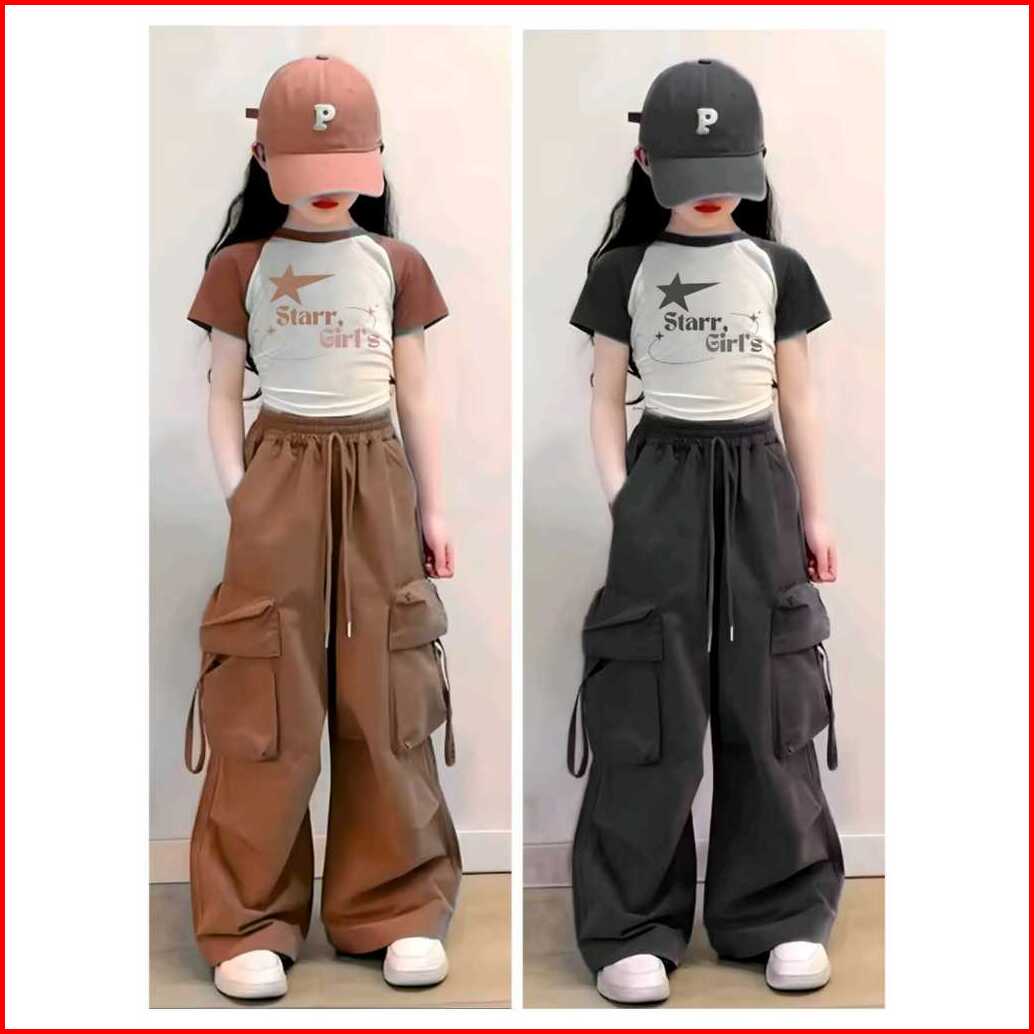 Setelan Anak Perempuan Celana Kargo Dan Kaos Raglan Terbaru Bahan Katun Korea Style Usia 1-12 Thn Oneset Pakaian Anak Te