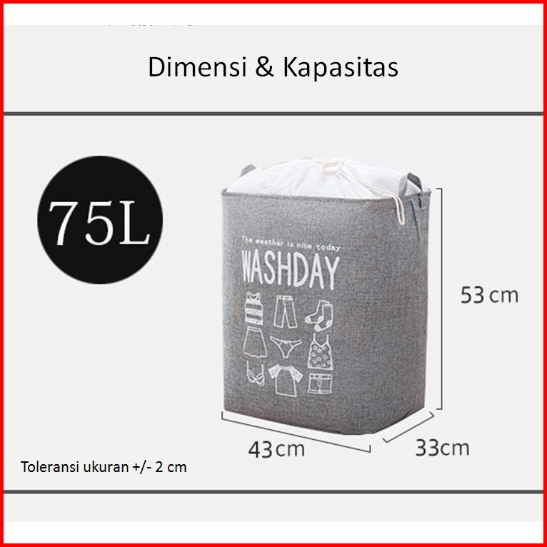 Keranjang Laundry Bag 75 L Dengan Penutup Keranjang Serbaguna Keranjang Baju Bersih Kotor Washday 75 L