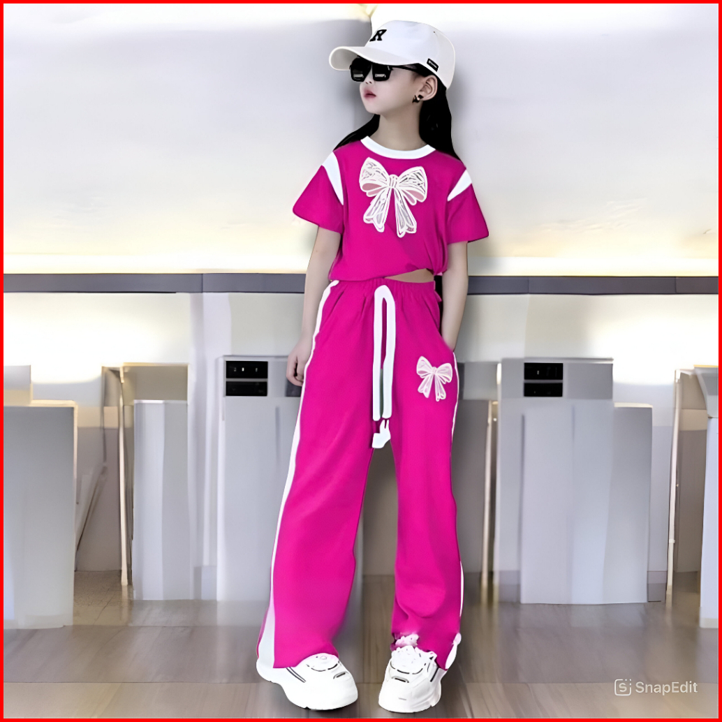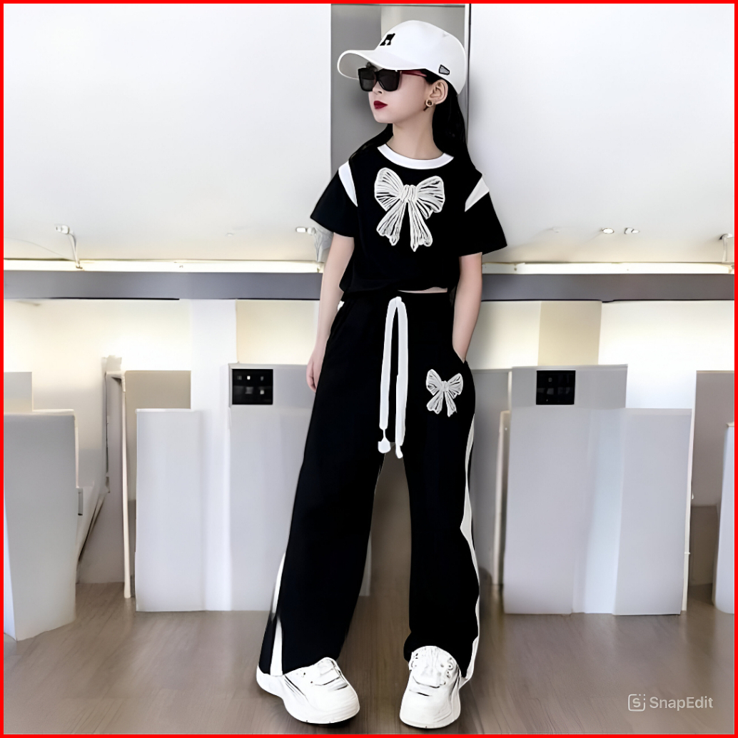 Setelan Baju Anak Perempuan Motif Pita Lengan Pendek Oneset Skena Anak Perempuan 1-12 Tahun Fashion Anak Korean Style