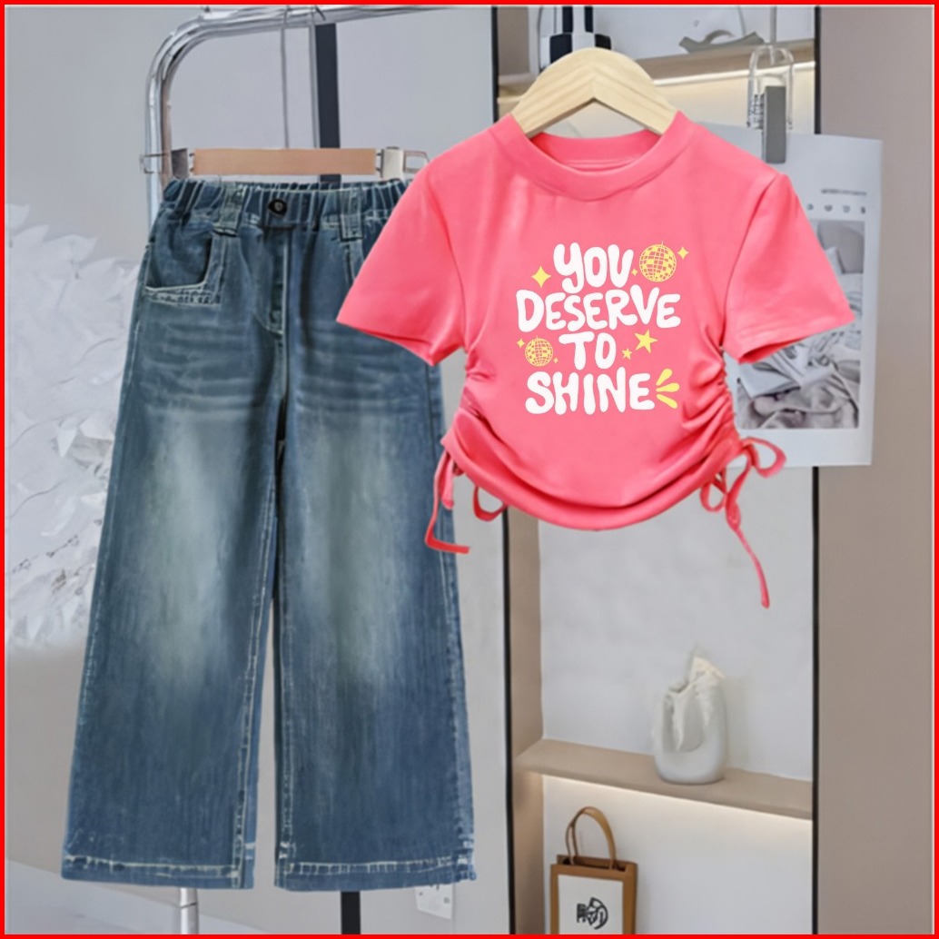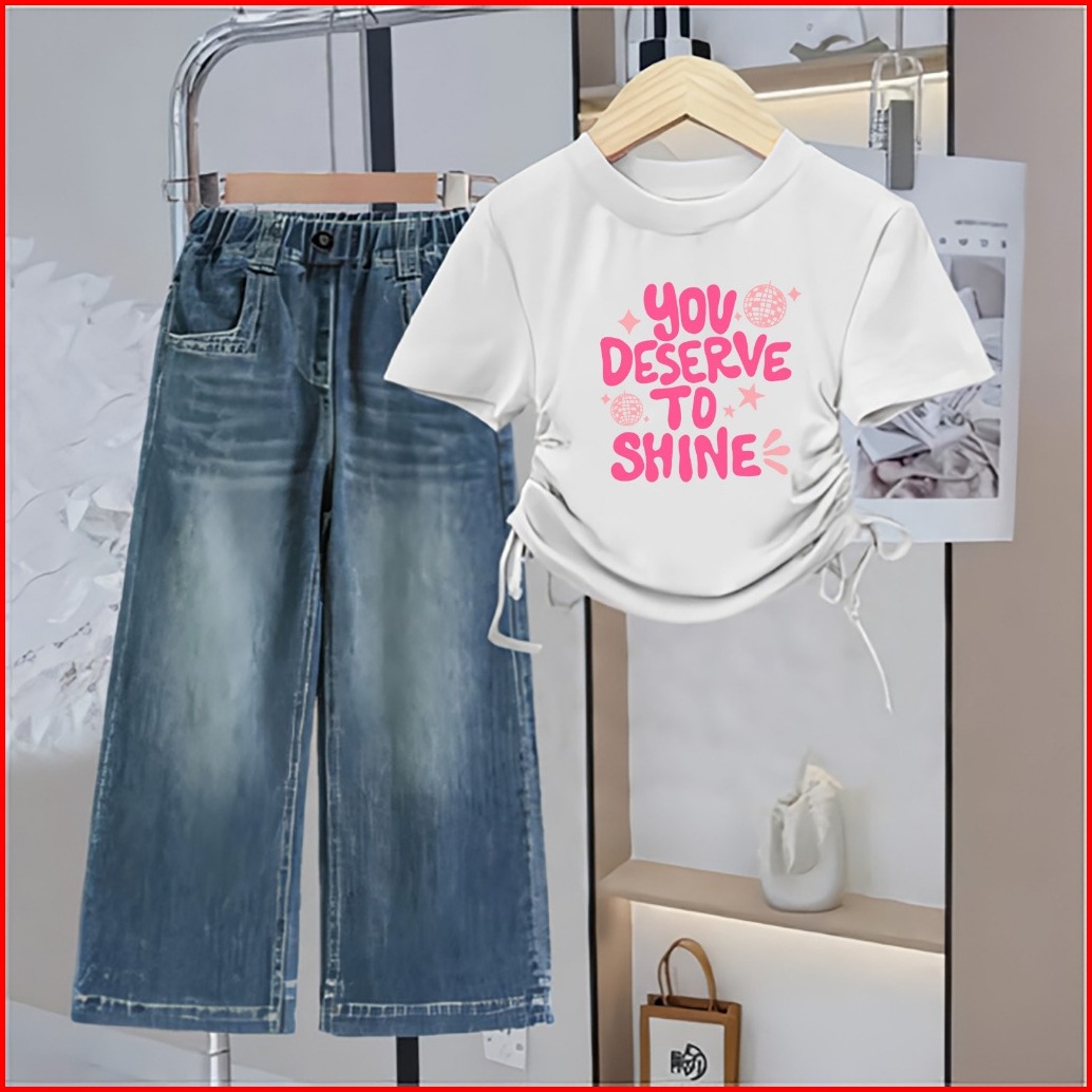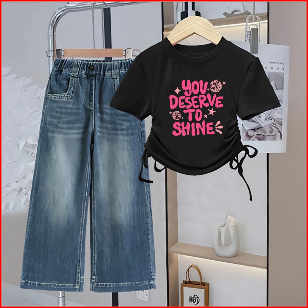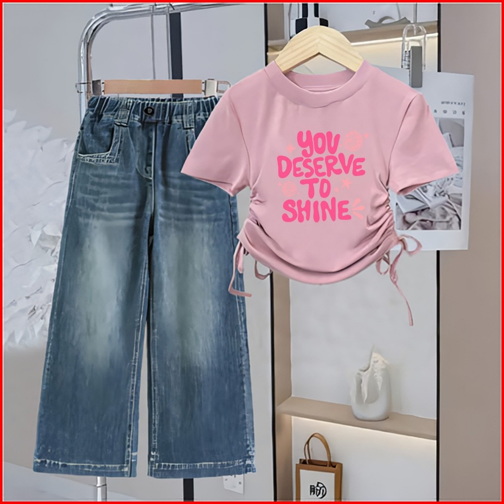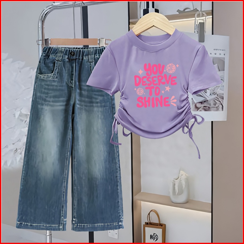 Baju Setelan Croptop Anak Perempuan Celana Kulot Jeans Usia 1 2 3 4 5 6 7 8 9 10 11 12 Tahun