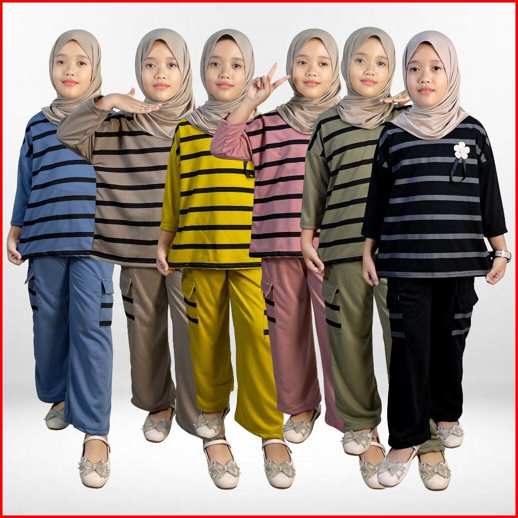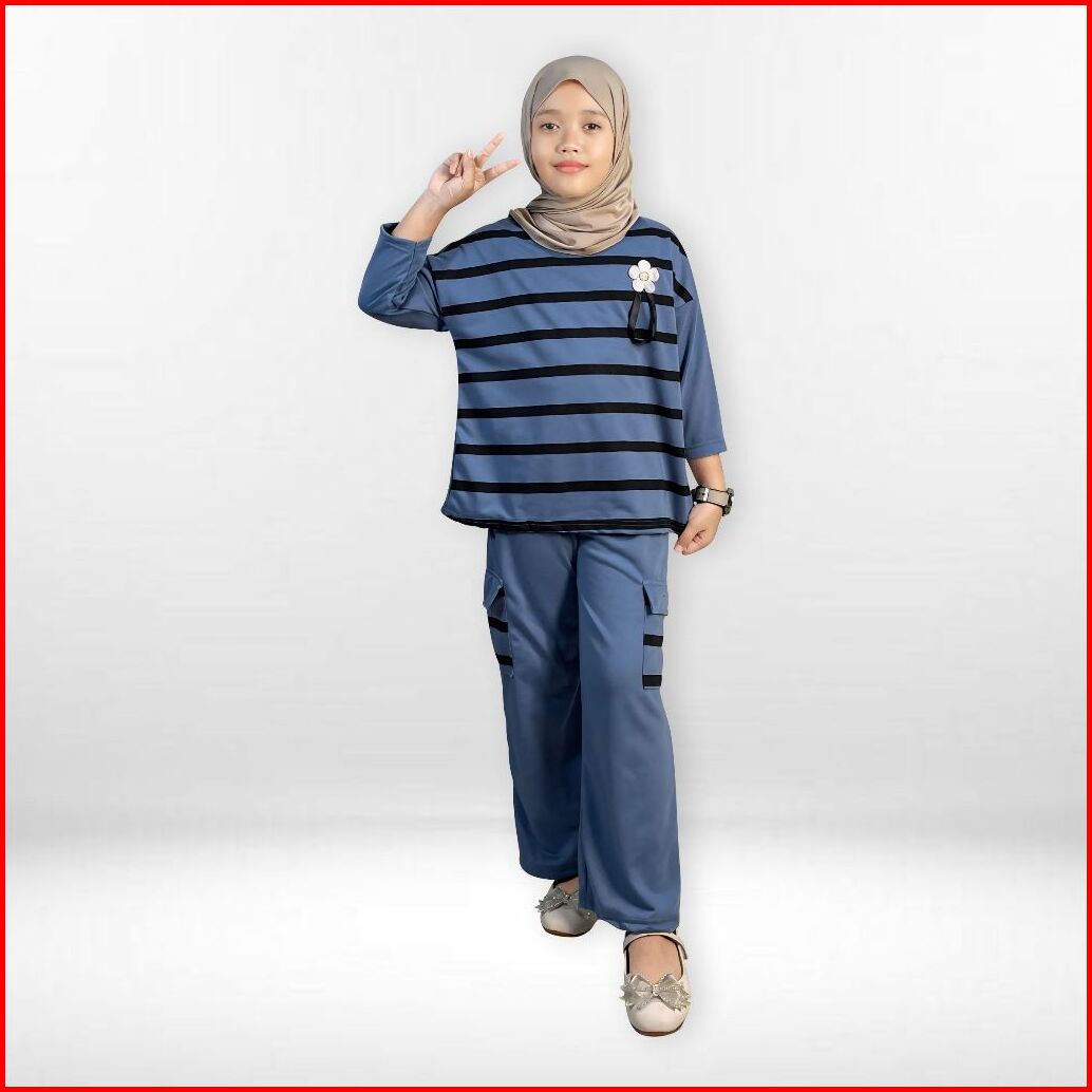 Setelan Baju Anak Perempuan Salur Bunga 155 Montyfashion