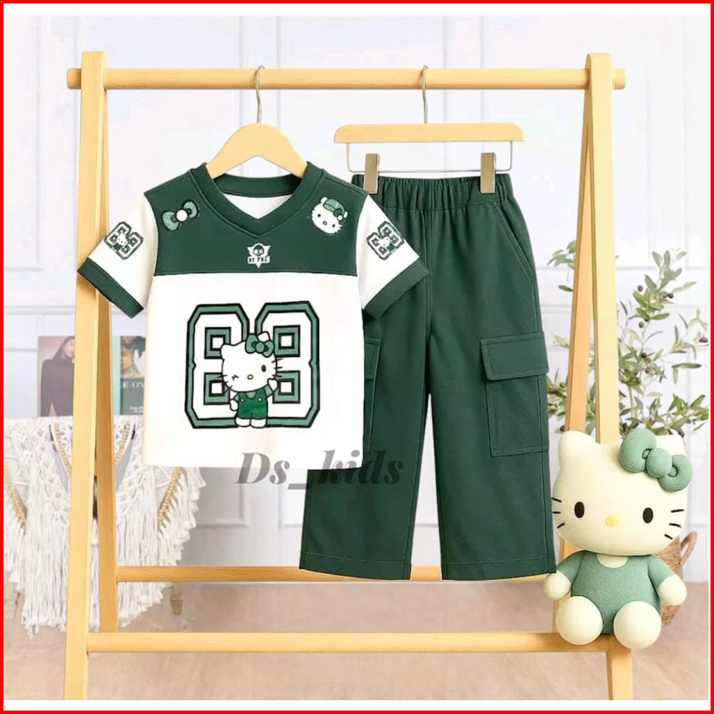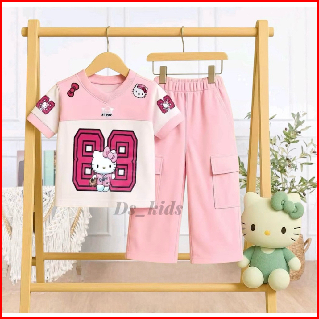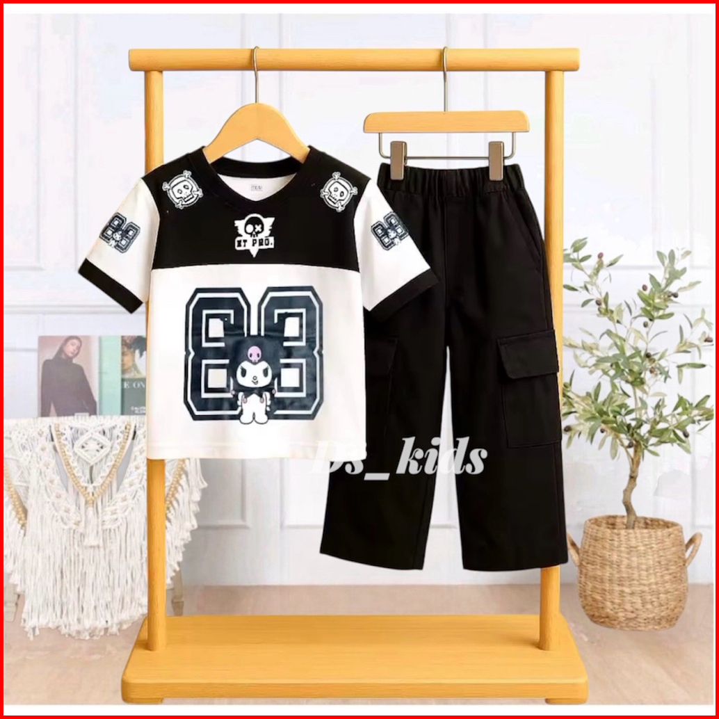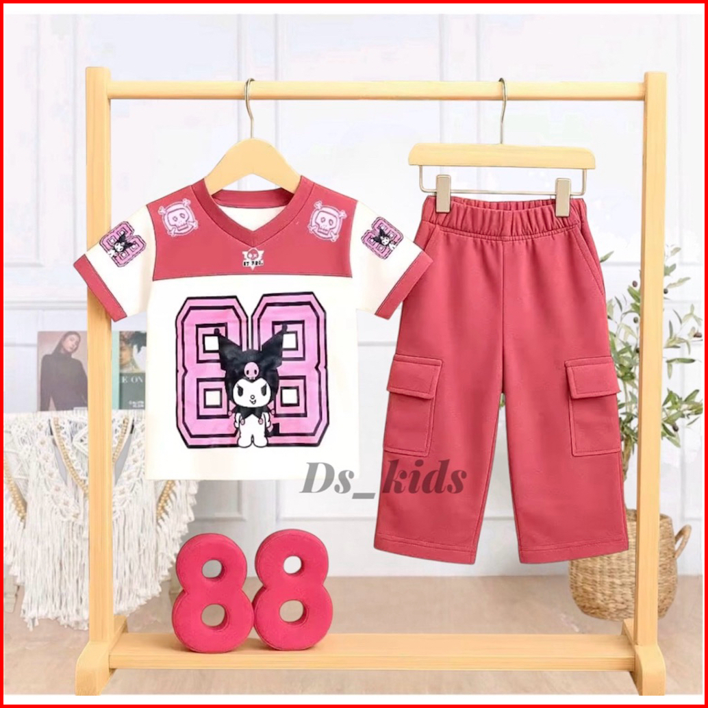 Setelan Jersy Anak Perempuan Motif Kuromi Usia 3-12 Tahun