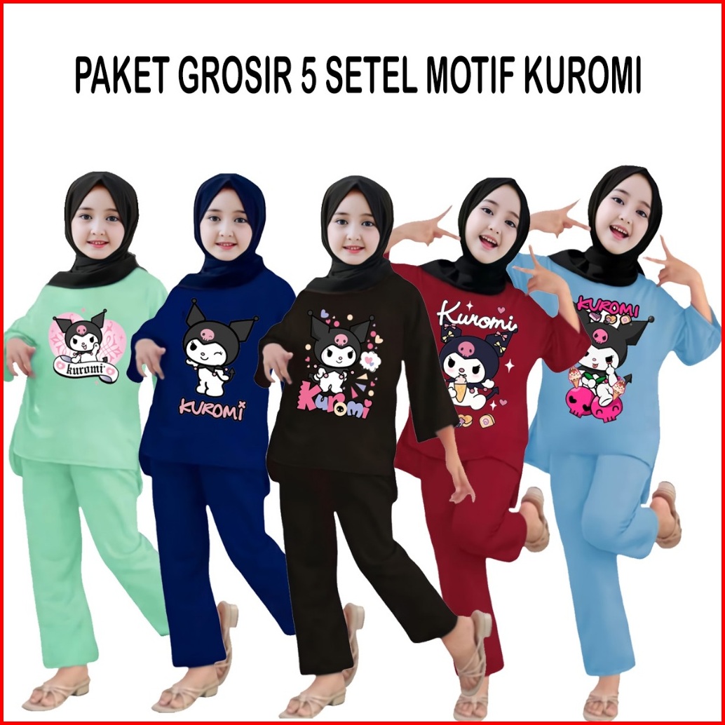 5 Pcs Setelan Anak Kekinian Usia 2-12 Thn Set Kuromi Paket 5 Pcs
