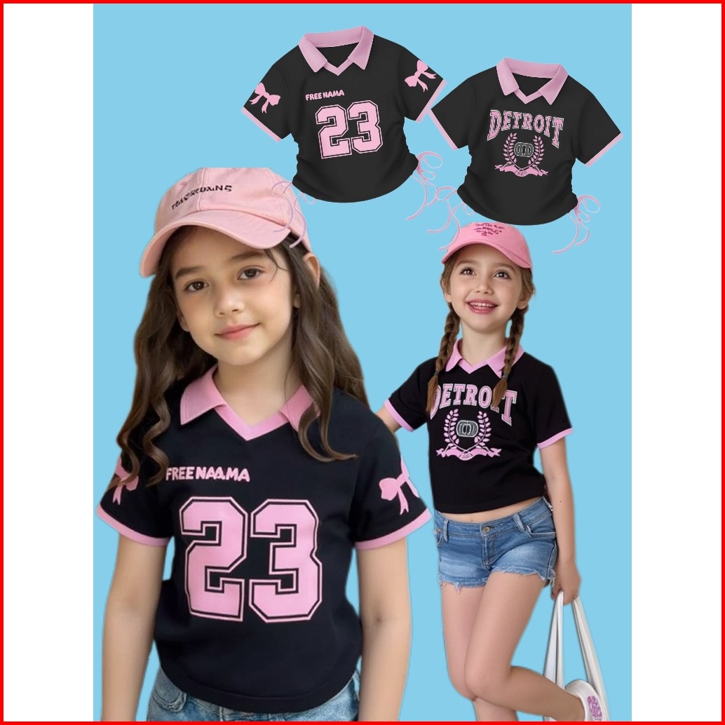 Kaos Anak Kerut Model Croptop Kerut Kerah Anak Perempuan 1-12 Tahun