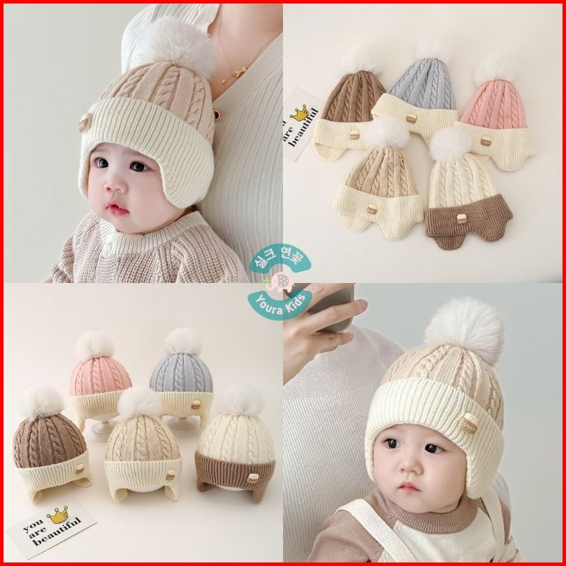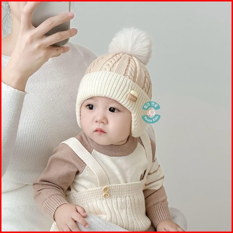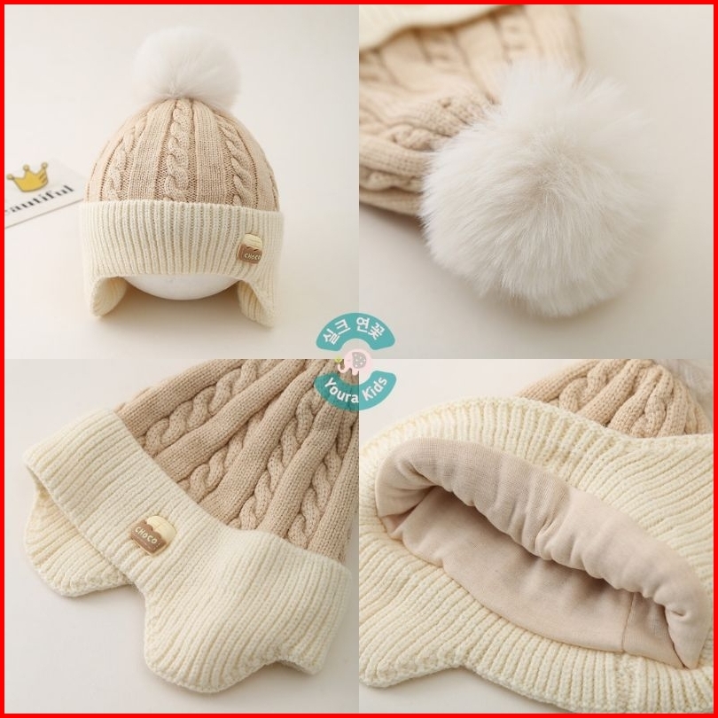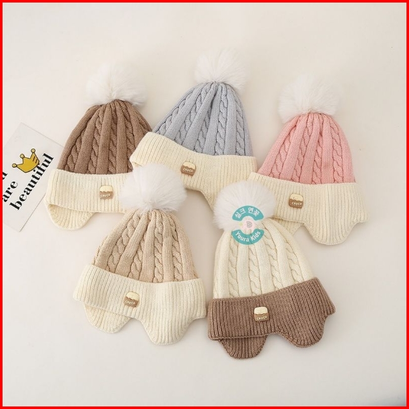 6bln - 4thn Topi Kupluk Penutup Telinga Anak-choco Pom2- -new Korean Model