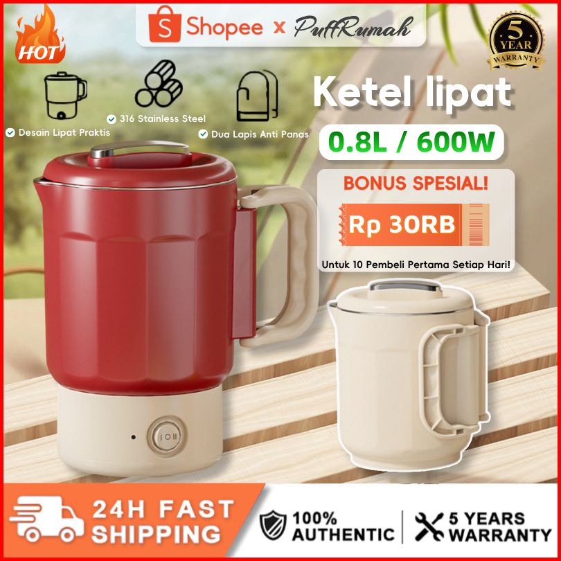 100 Ori Puffrumah 2025 Ketel Listrik Lipat Portable Multifungsi Teko Stainless Otomatis Travel