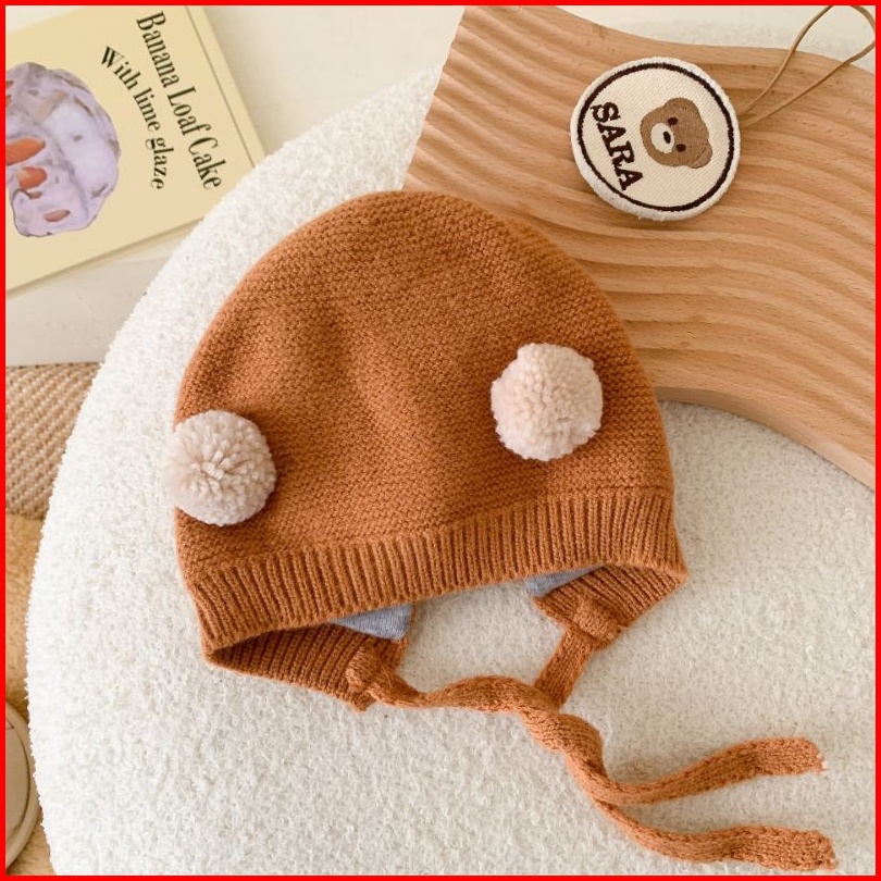 0-2 Thn Topi Bonnet Rajut Anak Newborn-big Pom2 Ball- -korean