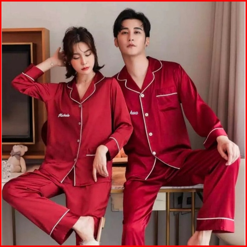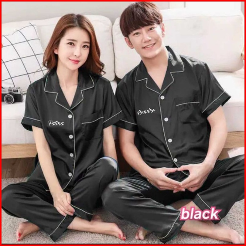 Piyama Pajamas Baju Tidur Satin Couple Pp Cp Pria Wanita Custom Bordir Nama Hadiah Kado Gift Hampers Nikahan Wedding Per