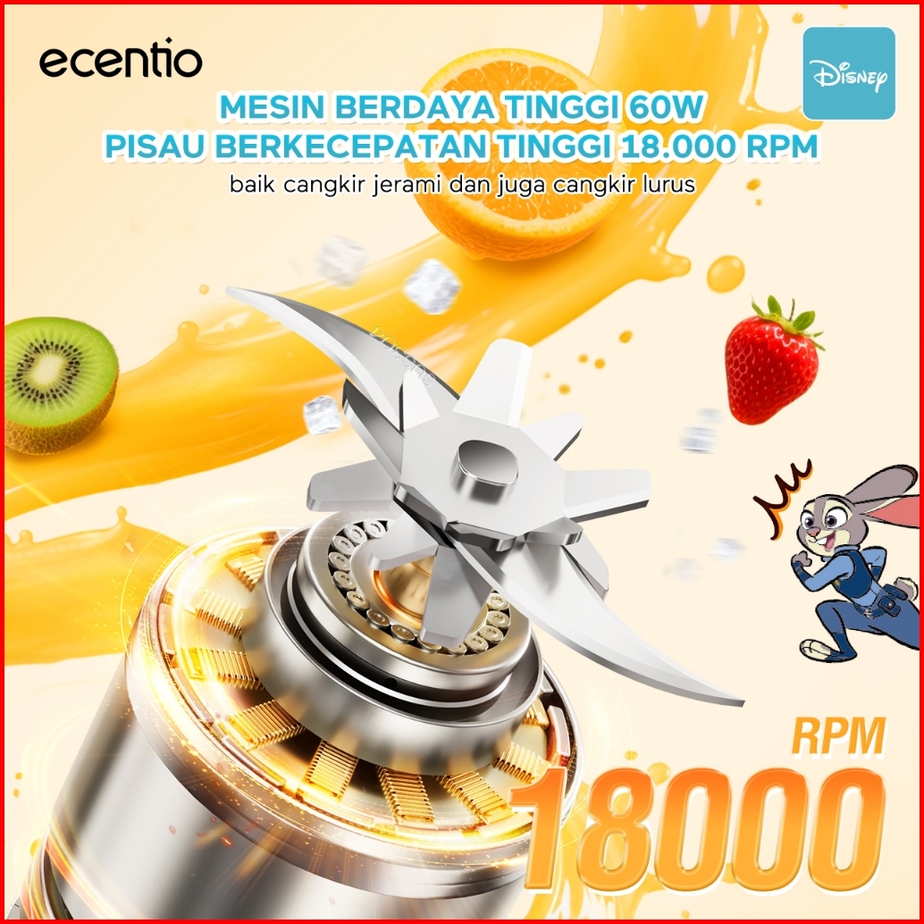 Ecentio Disney Zootopia Juicer Portable 450ml 450ml Mini Blender 18 Pisau Stainless Mpasi Portable 2 Tahan Pecah Kaca Ge