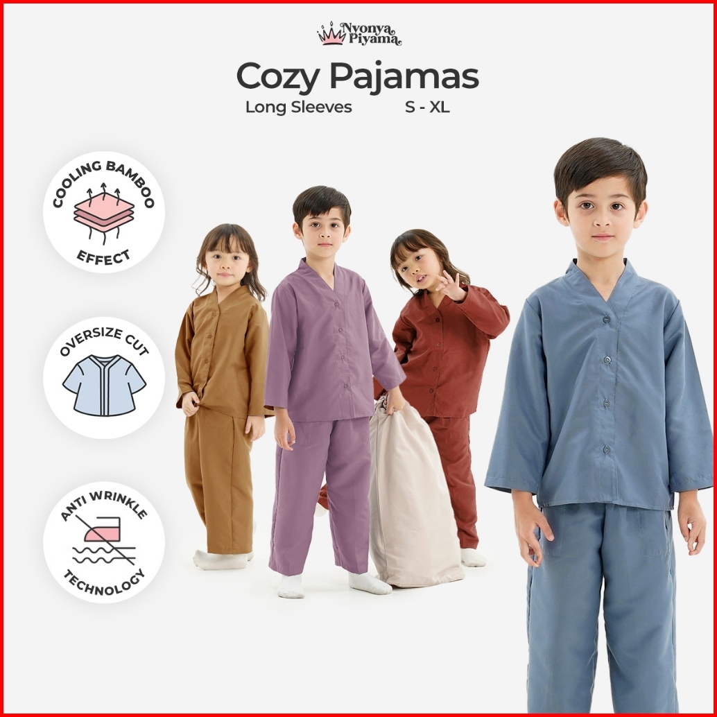 Best Seller Nyonya Piyama Poly Bamboo Oversized Cozy Set Lengan Panjang Polos Anak