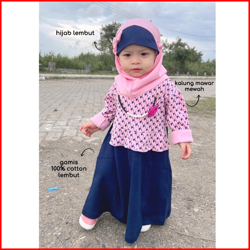 Amirah Bellarosie Set Baju Gamis Sepatu Hijab Setelan Muslim Anak Bayi Perempuan Cewe Terlaris Little Bee Bora Laura Kal