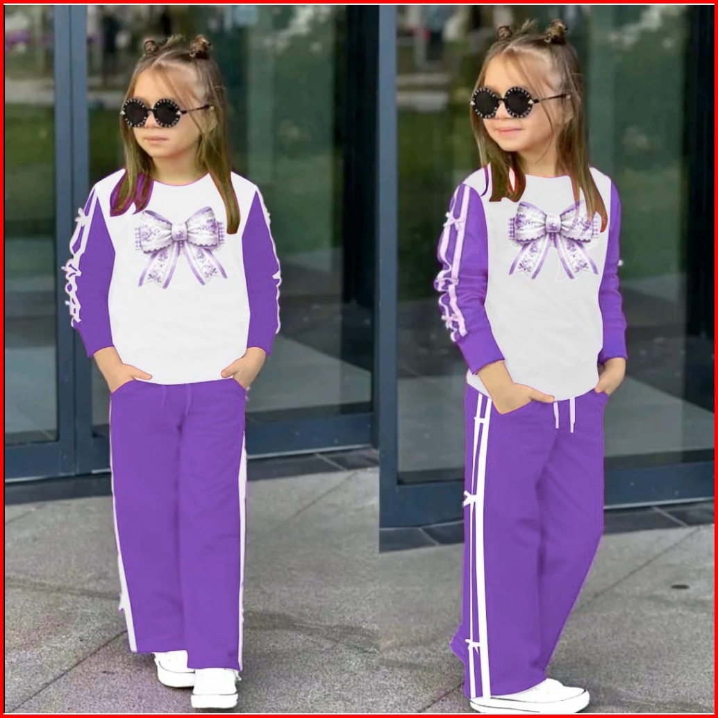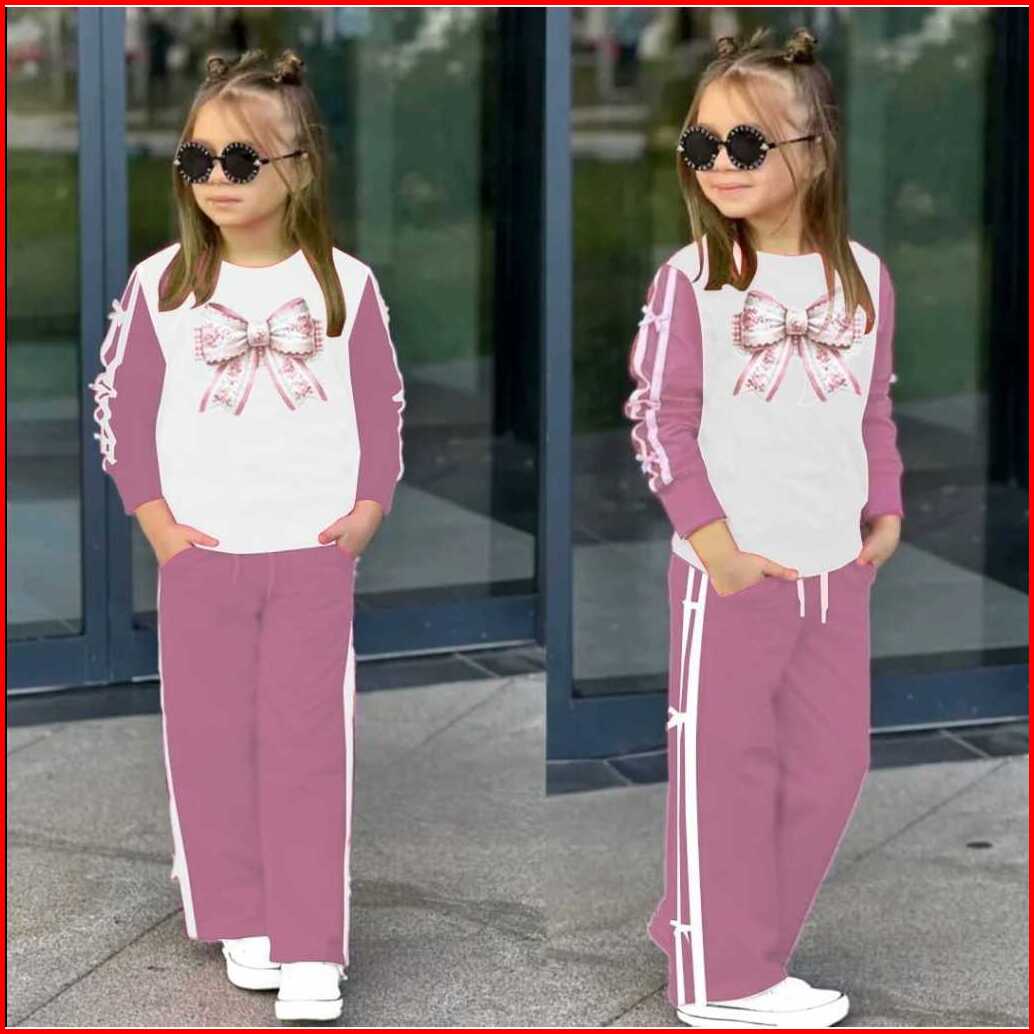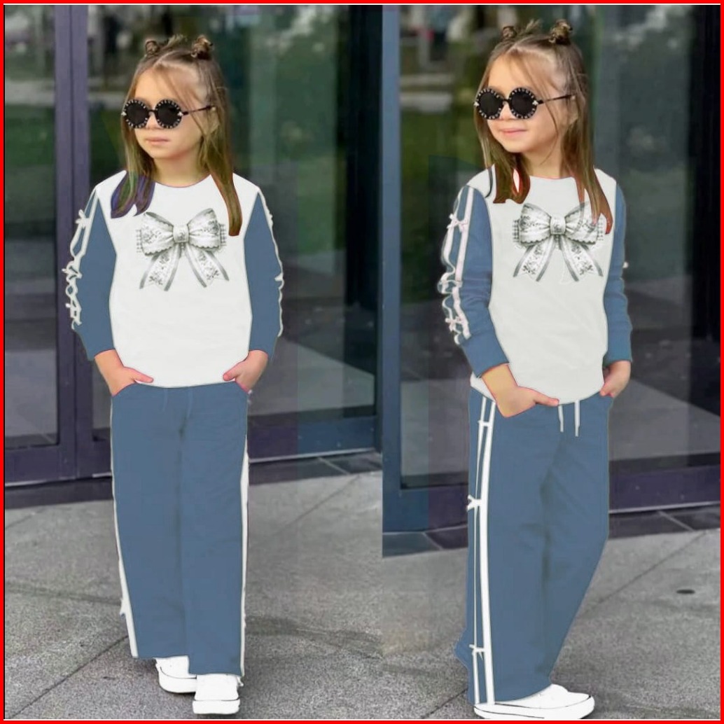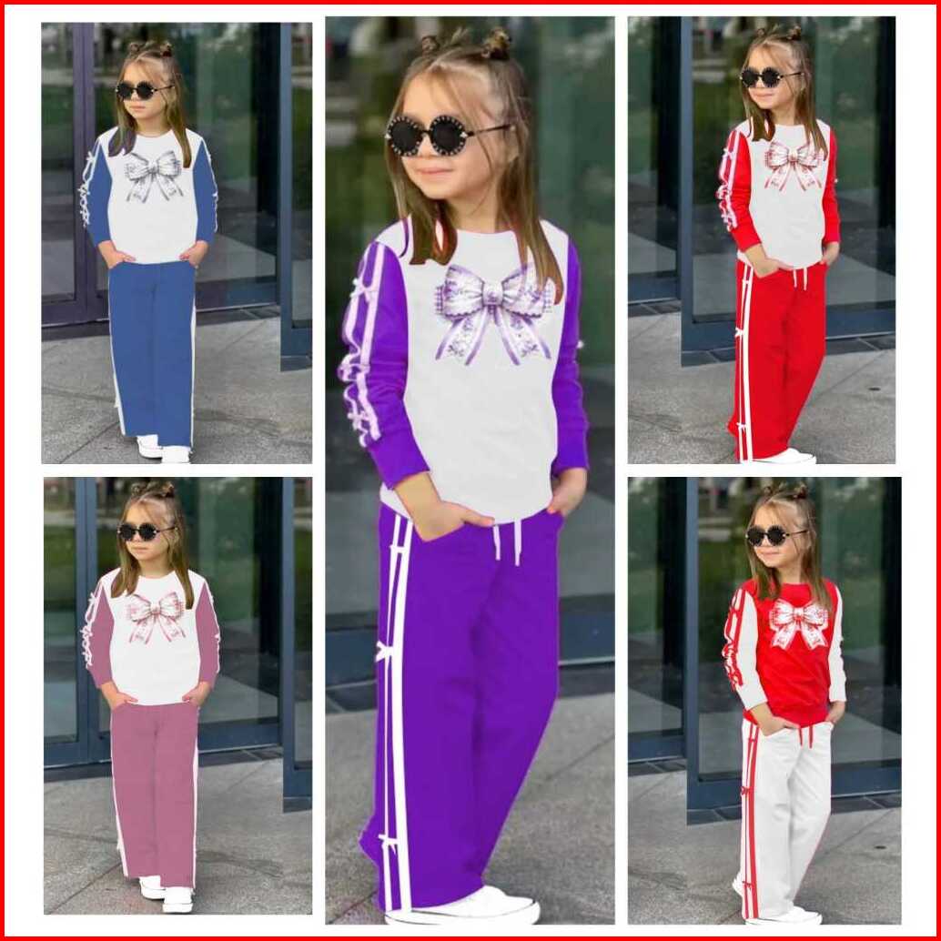 Set Baju Anak Perempuan Motif Pita List Setelan Sweater Dan Celana Kulot Oneset Fashion Anak Trendi