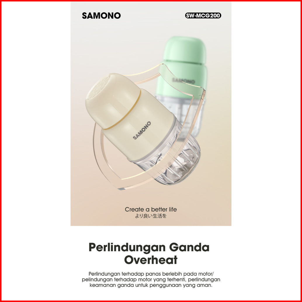Samono Food Processor Food Chopper 300ml Mesin Penghalus Daging Dan Buah Garansi Resmi 1 Tahun Sw-mc200