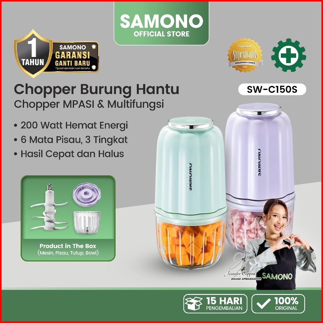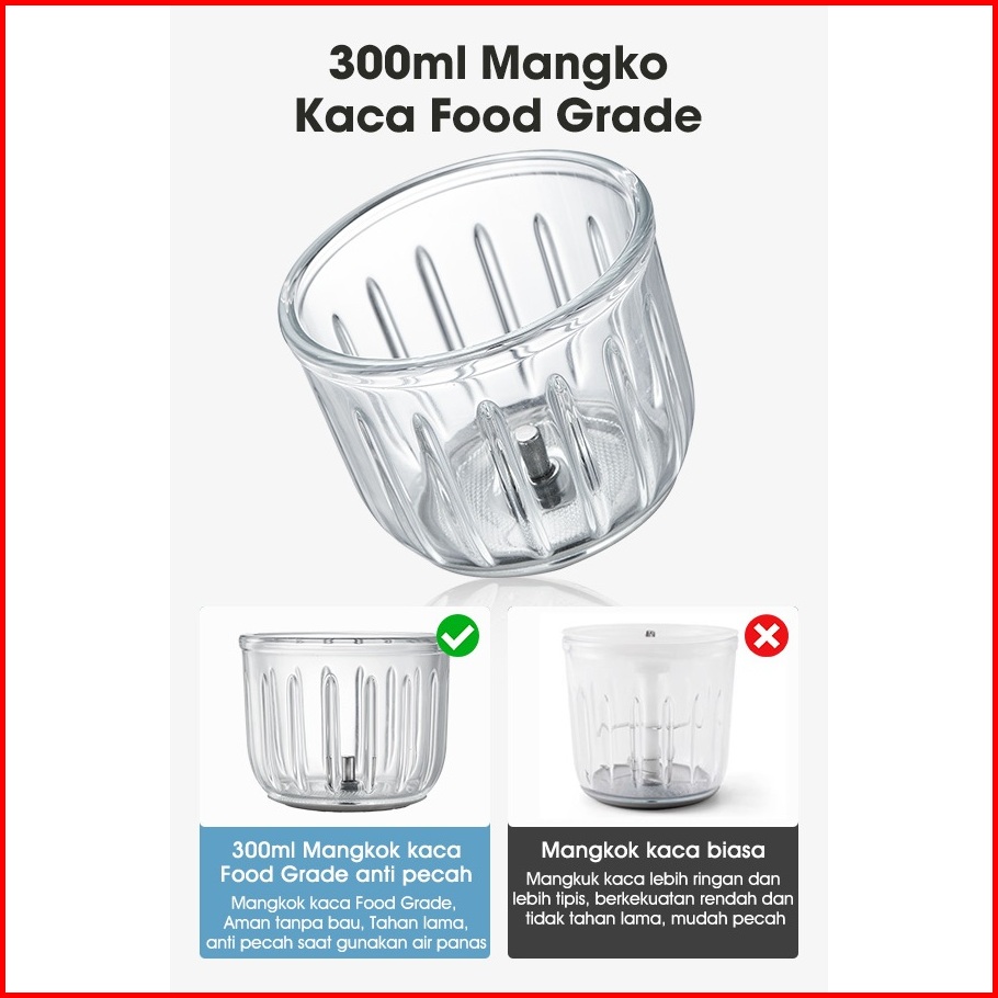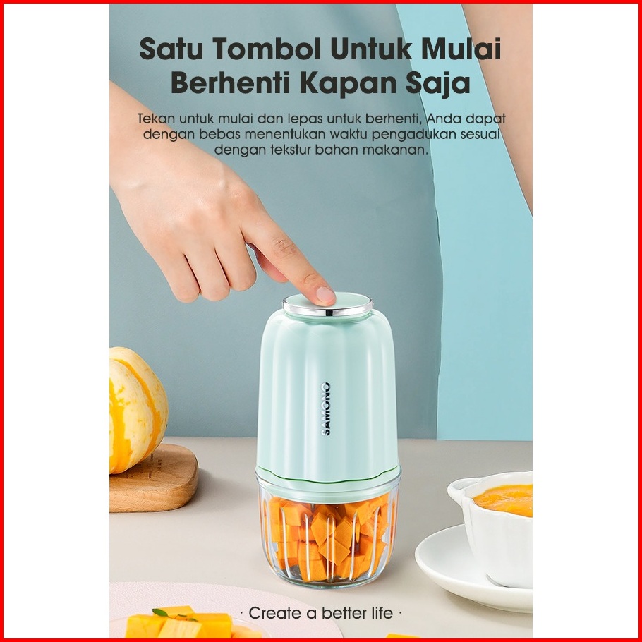 Samono Chopper Serbaguna Elektrik 8 Pisau 200 Watt Penghalus Bumbu Dapur Sayur Buah Kaca Borosilikat Tebal Food Grade 30