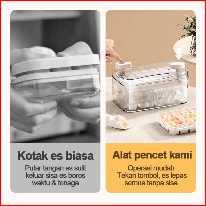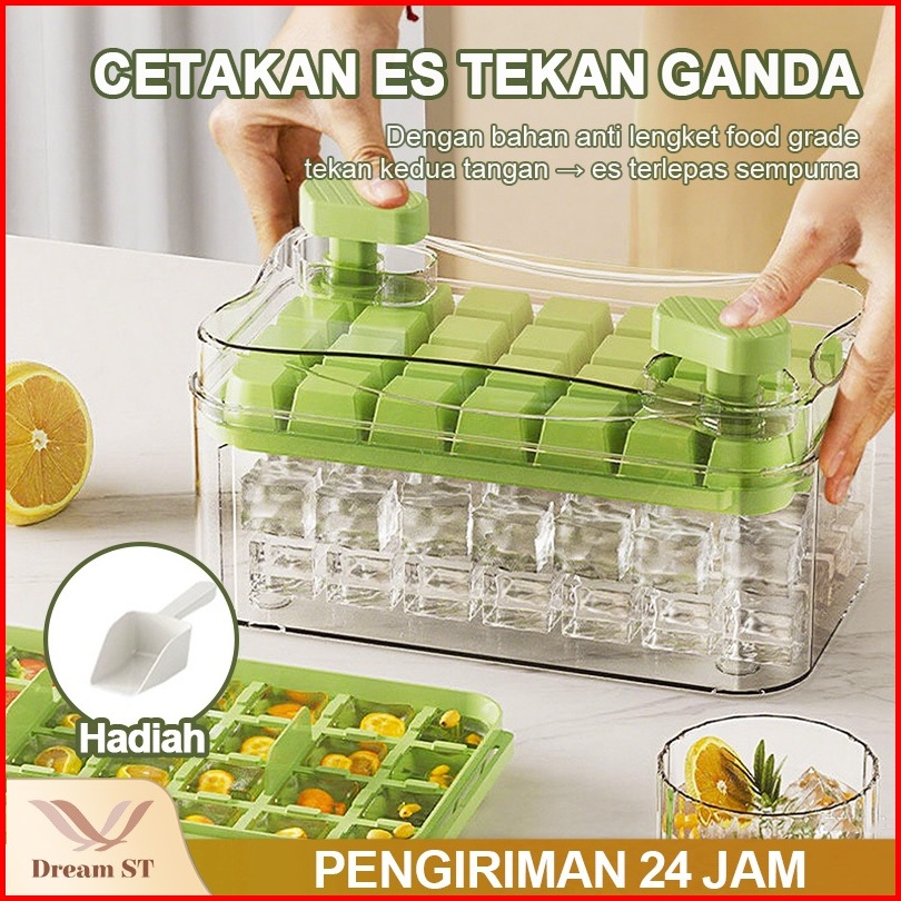 Dream Street Ice Cube Maker Cetakan Es Batu 28 Grid Wadah Transparan Kotak Penyimpanan Es Batu Dengan Press Handle Sekal