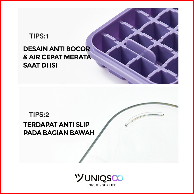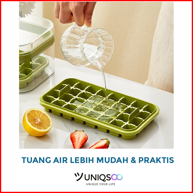 Uniqsoo Cetakan Es Batu 32 Grid 2 Tray Wadah Transparan Ice Cube Maker Dengan Press Handle Sekali Tekan Cf070