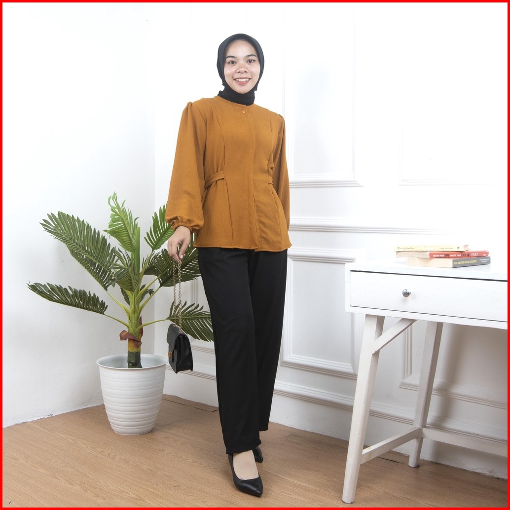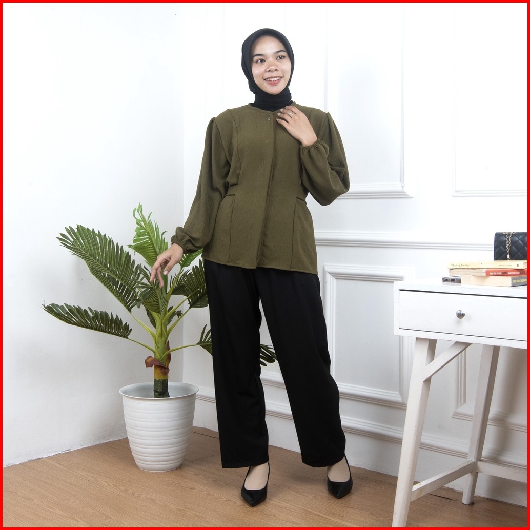 Blouse Kemeja Wenna Atasan Wanita Crincle Airflow Lengan Balon Full Kancing