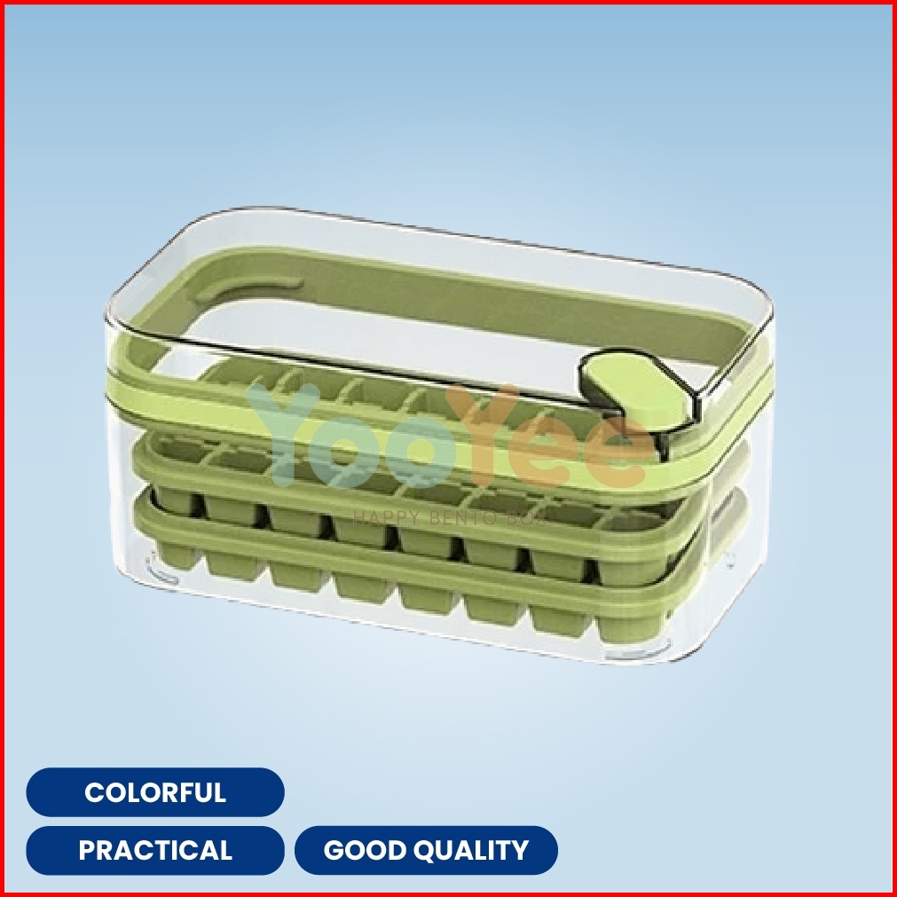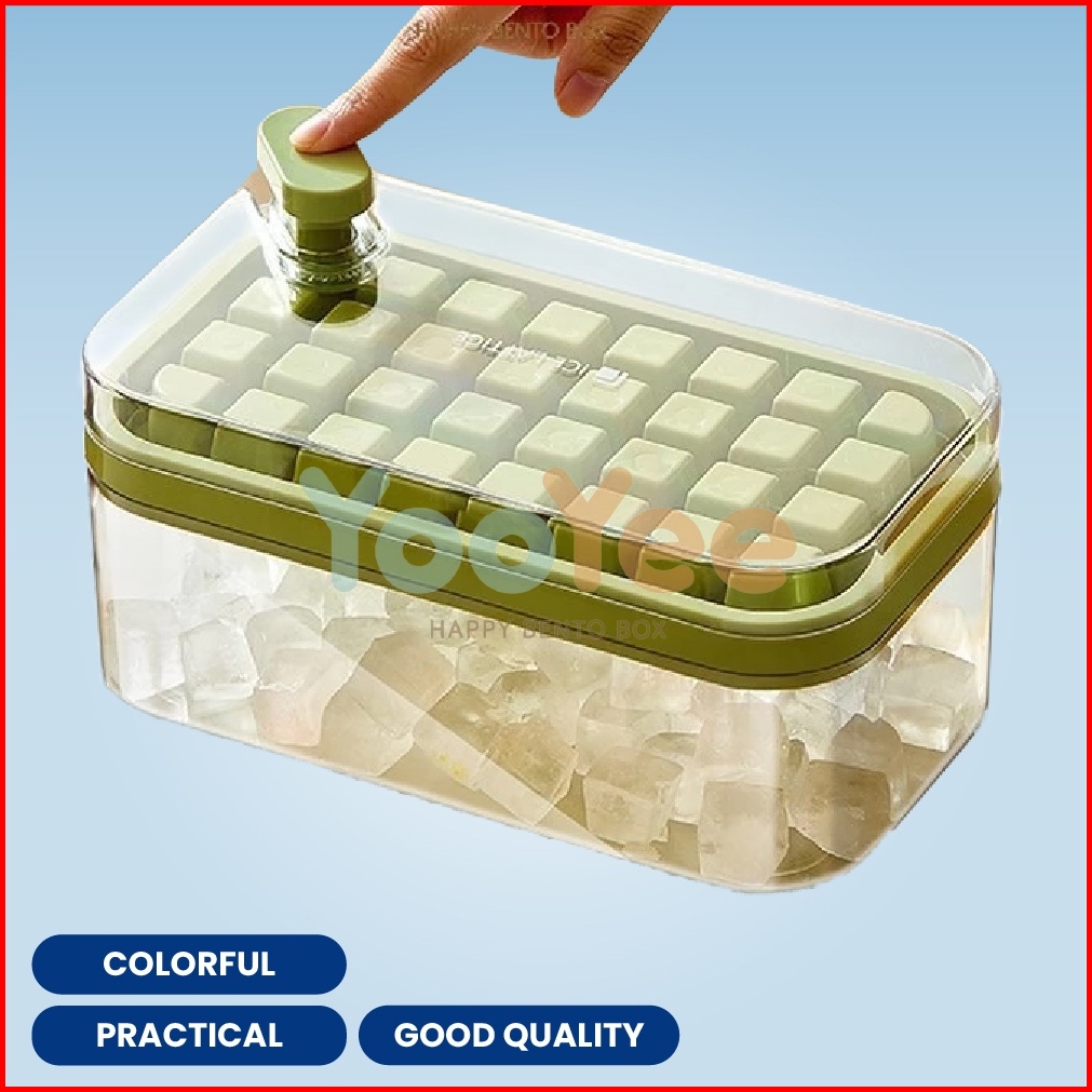 Yooyee Cetakan Es Batu Kotak Ice 32 Grid 2 Tray Free Sekop Dengan Press Handle Sekali Tekan