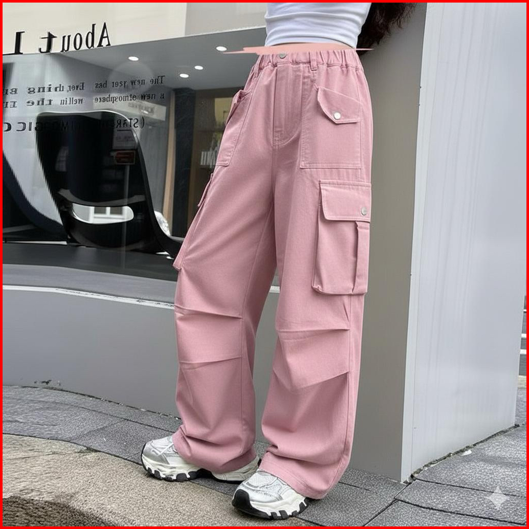 Celana Cargo Anak Perempuan Stylish Korean Model Baggy Streetwear Usia 2 - 14 Tahun