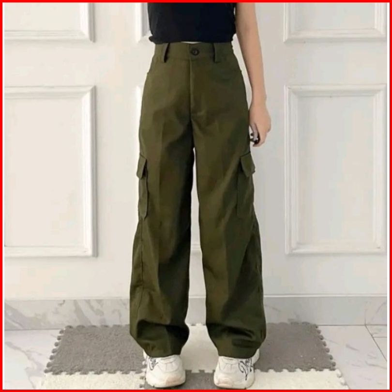 Celana Panjang Anak Perempuan Cargo Kargo Remaja Tanggung Cewek Wanita Usia 8 9 10 11 12 13 14 15 16 Tahun Korean Style