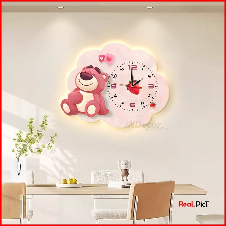 Jam Dinding Aesthetic Cute Beruang Led Jam Dinding Lucu