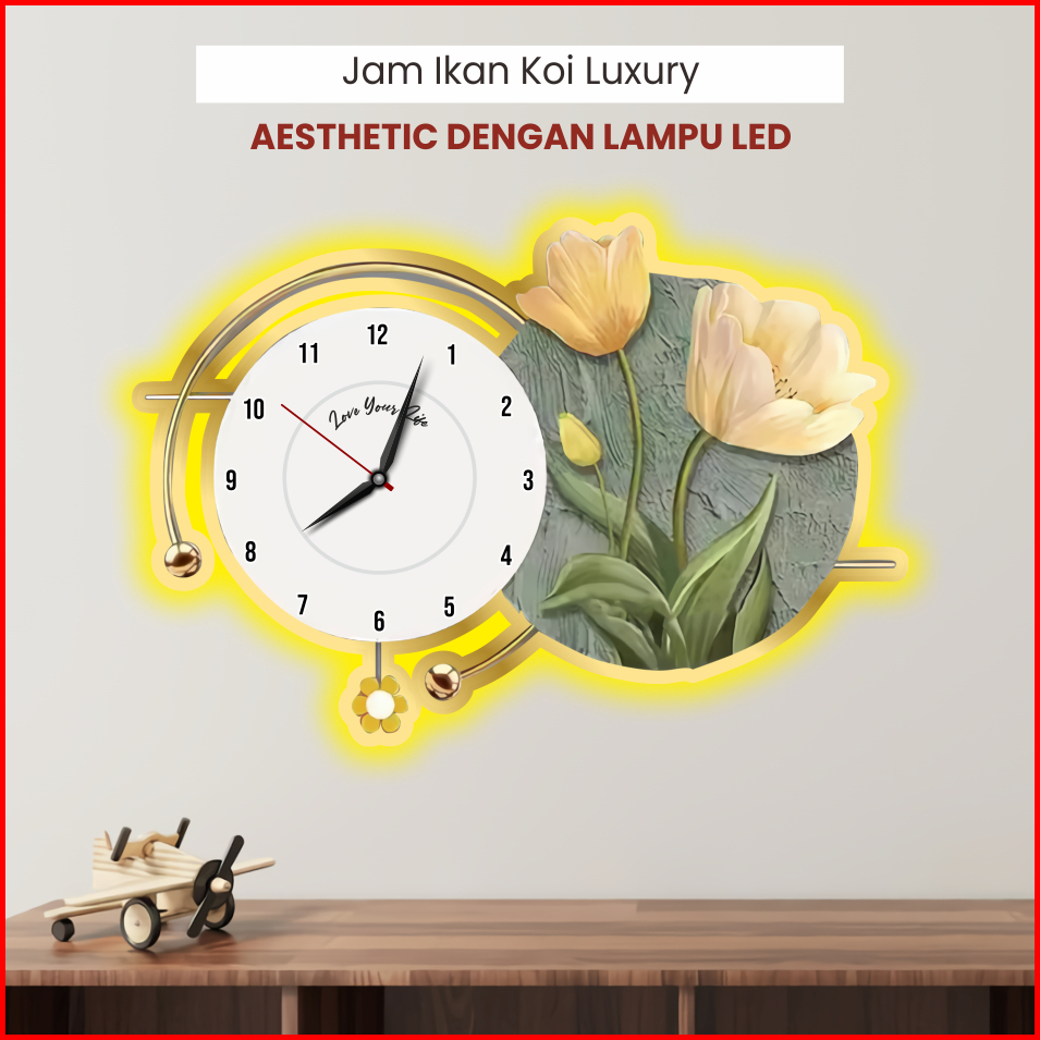 Jam Dinding Aesthetic Lampu Boho Bunga Matahari Led Clover Bunga Semanggi Daisy Kuning Bohemian