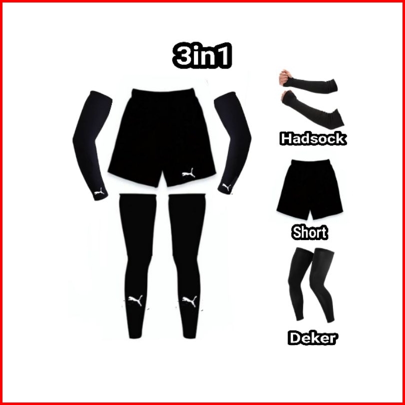 Short Manset Tangan Dan Kaki 3pcs Sepaket Olahraga Celana Pendek Handsock Deker Knee