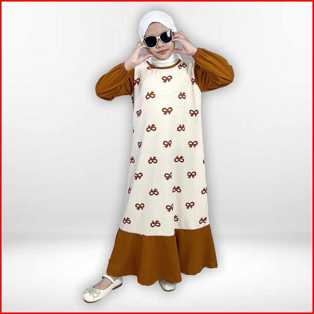 Gogofashion 830 Gamis Anak Sofia Bahan Soft Knit Motif Pita