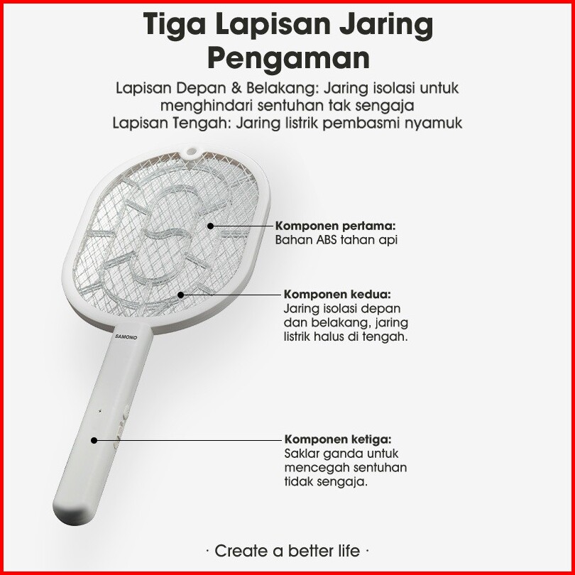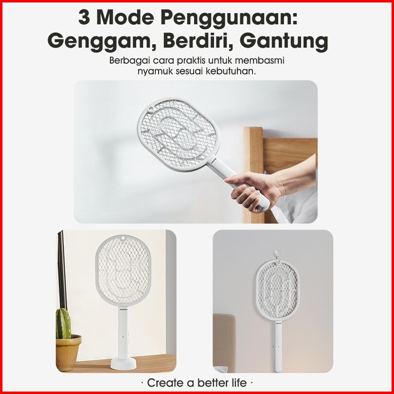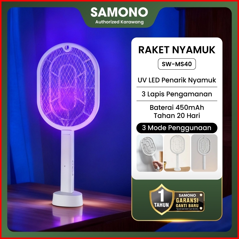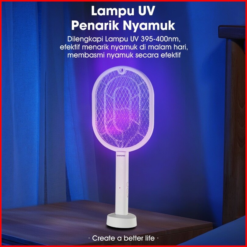 Samono Raket Nyamuk 3in1 Uv Light 450mah Free Kabel Micro Usb Baterai Awet 20 Hari Mode Genggam Gantung Berdiri Raket Ny