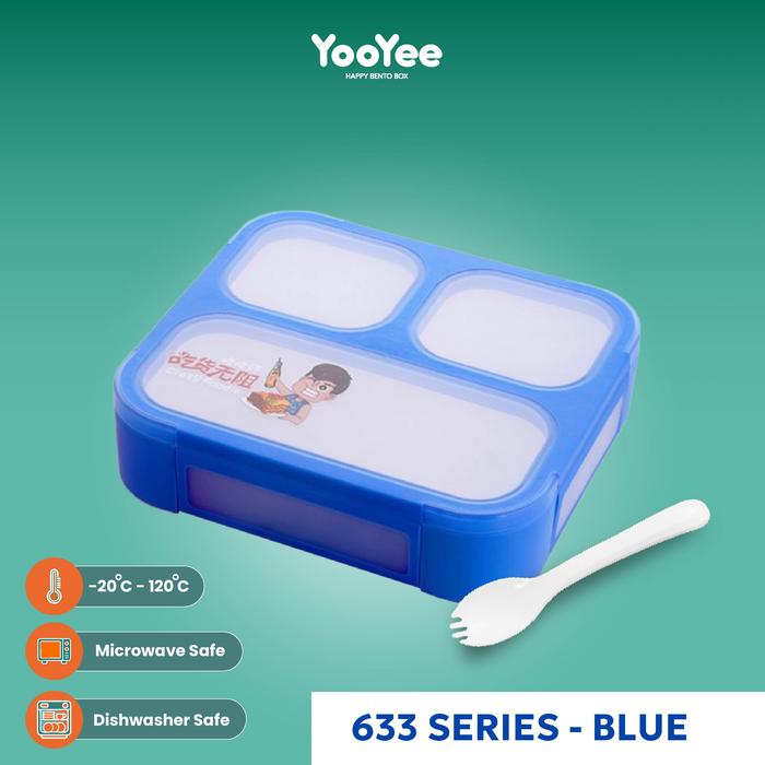 Yooyee 633 Kotak Makan Sedang 3 sekat Anti Bocor Anti Campur - Warna Biru