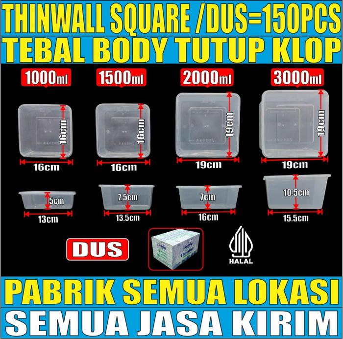Thinwall SQ Tebal 1000ml 1500ml 2000ml 3000ml Victory /Dus Kotak Makanan Persegi Square JSK - 1000ml Square
