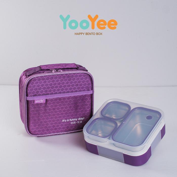 Yooyee Kotak Makan Stainless 3 Sekat Set dengan Tas 635 plastik steel Kitchenware - Hijau Army