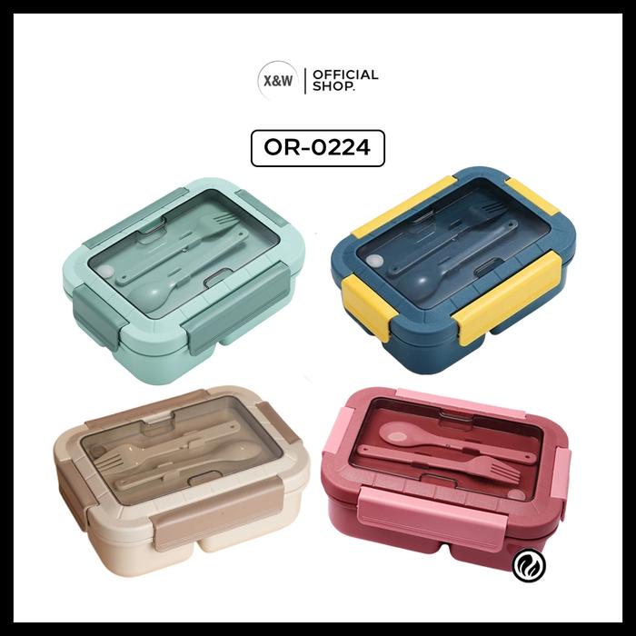 X&W Lunchbox 3 Sekat Microwavable 1500 ml Anti Tumpah Free Sendok OR-0224 - Coffee