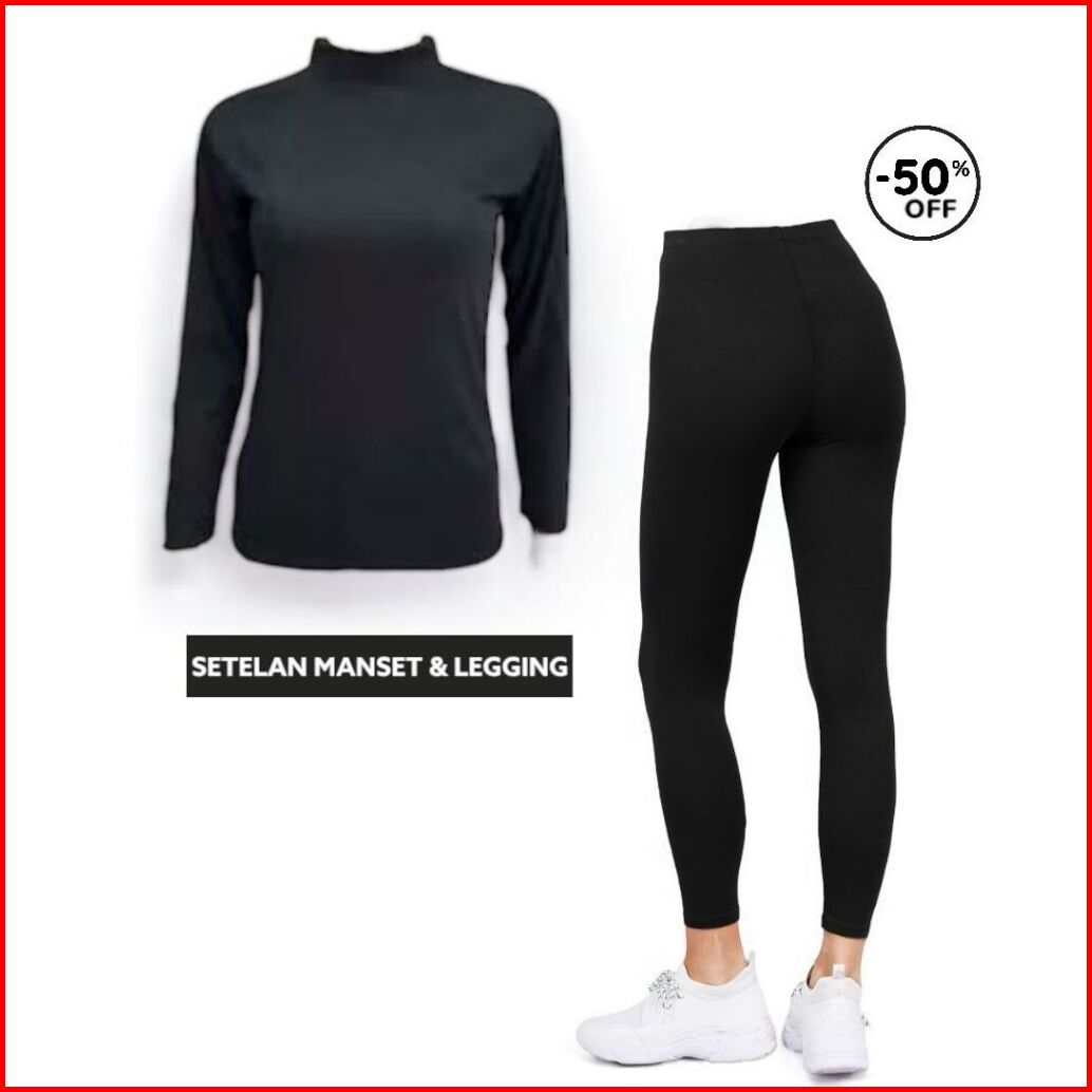 Paket Manset Legging Wanita 1 Set Standar Jumbo Setelan Manset Dan Legging Perempuan One Set