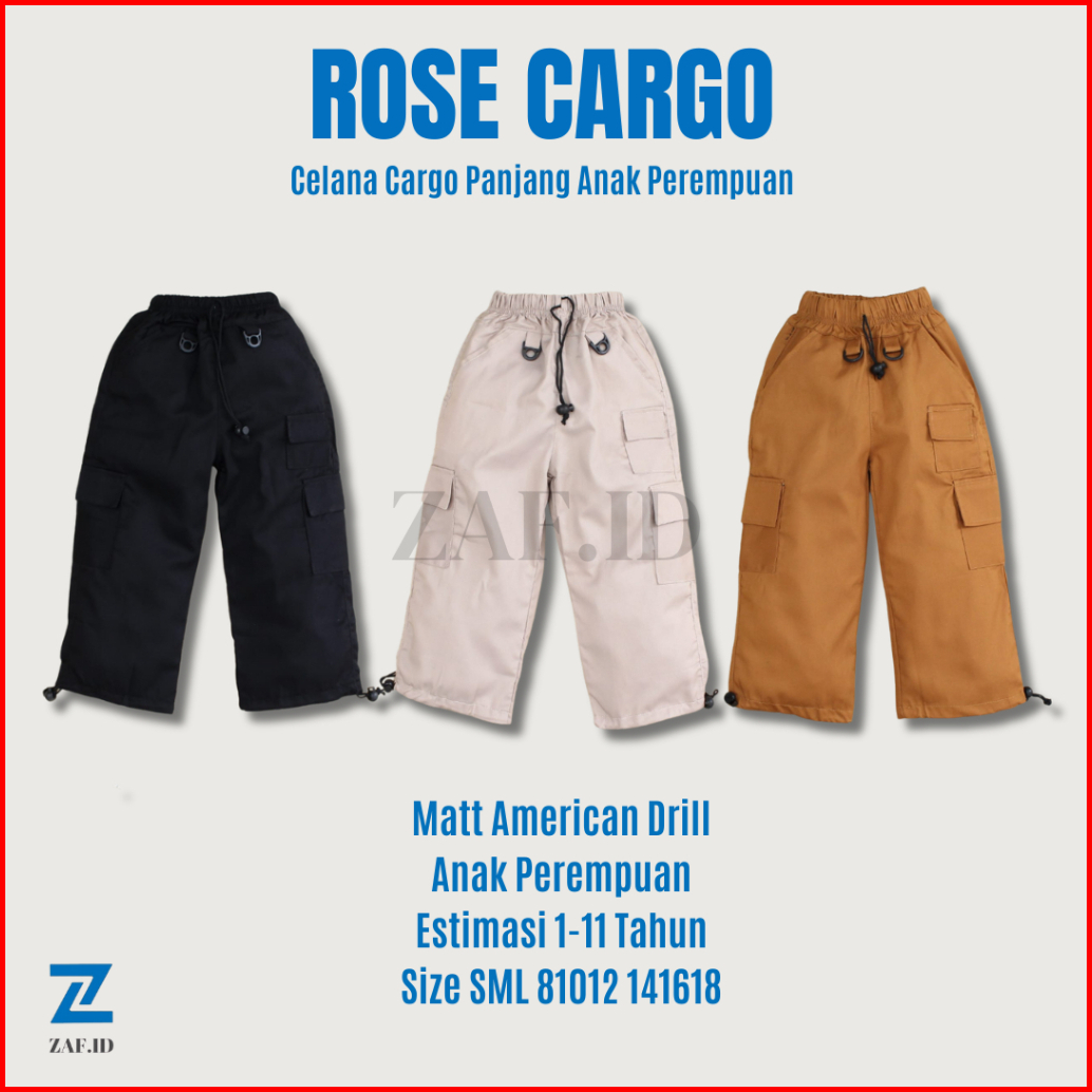 Zaf.id Rose Cargo - Celana Cargo Panjang Anak 1-11 Tahun Celana Anak Korean Style Celana Cargo Anak Perempuan