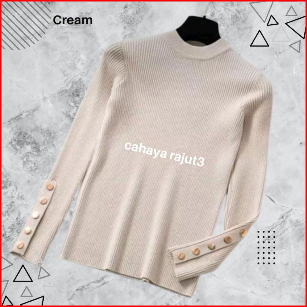 Inara Blouse Korea - Primula Blouse Korean Style Baju Rajut Premium Inner Inara Rajut Lengan Kancing Atasan Wanita Manse