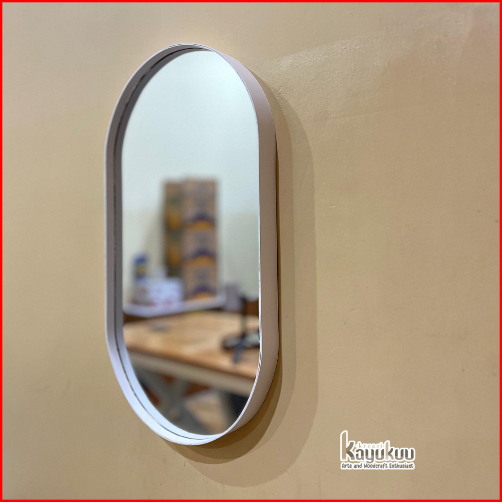 Kreasikayukuu Kaca Cermin Gantung Oval Aesthetic - Cermin Dinding 45 Cm X 25 Cm
