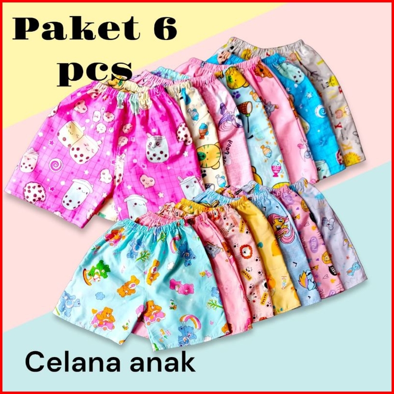Paket 6 Pcs Celana Pendek Anak Perempuan Celana Anak Karakter