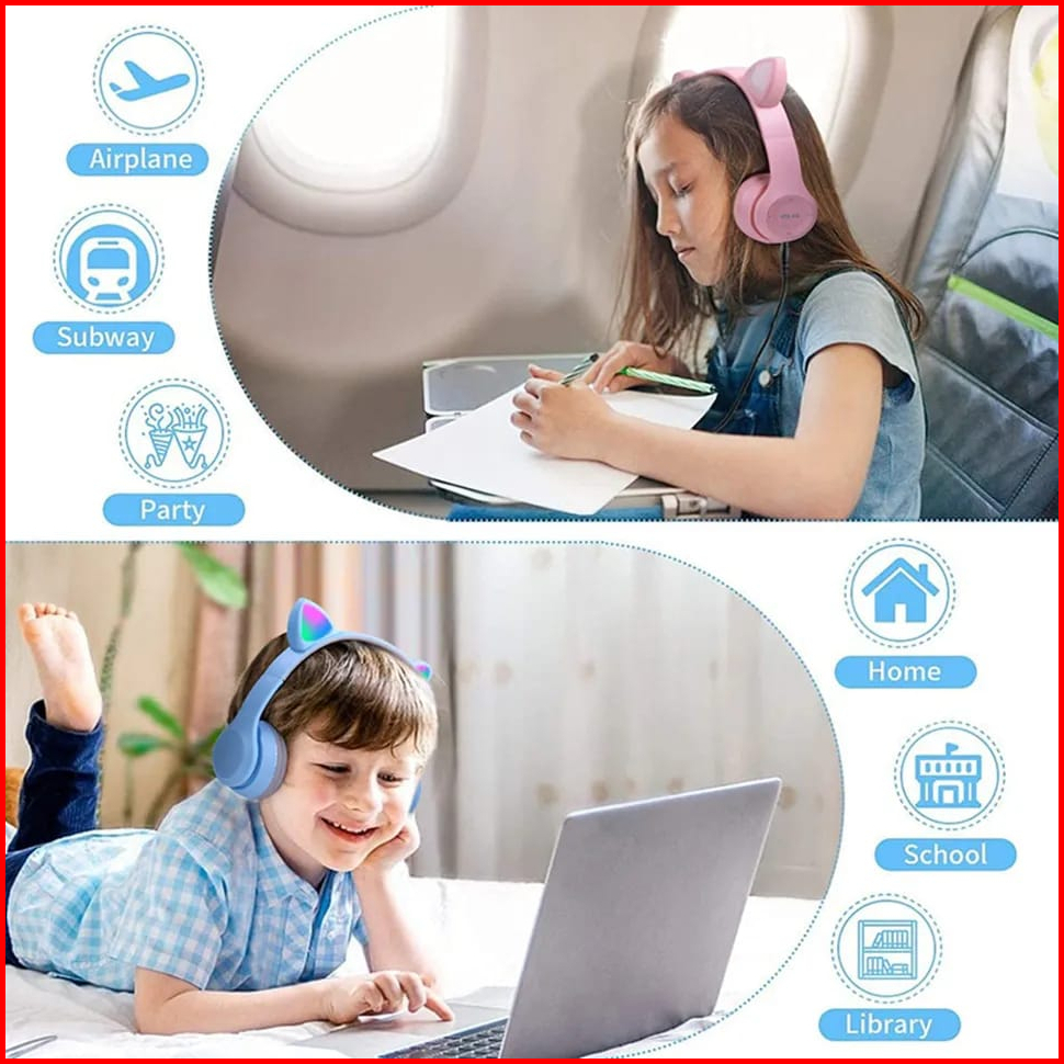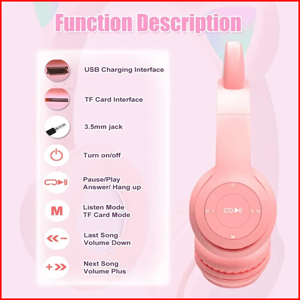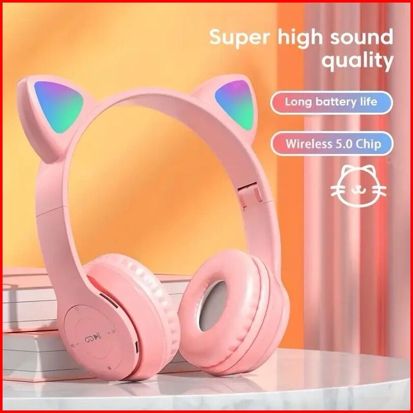 P47m Headphone Bluetooth Gaming Cat Ears Wireless Rgb Led Light Super Bass Stereo Headset Bando