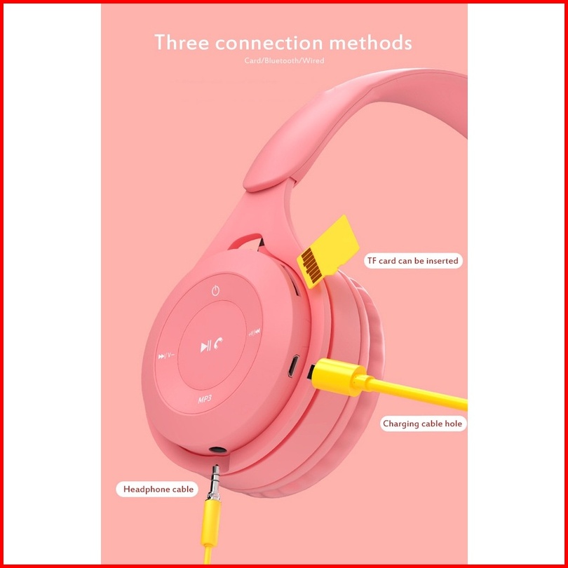 Headphone Bluetooth Extra Bass Free Kabel Jack 3.5mm - Headset Wireless Warna Macaron